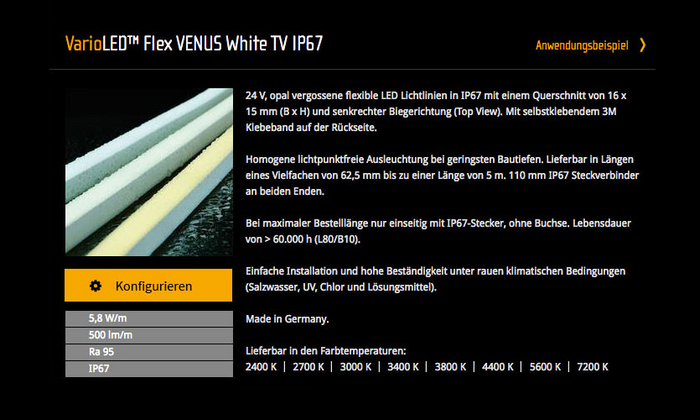 Natürlich ist es auch möglich, im Produktbereich direkt von den Detailseiten aus zu konfigurieren. Wenn Sie also schon wissen, welches Produkt das richtige für Ihre Applikation ist, dann wählen Sie diesen Zugang und klicken auf der Produktseite den „Konfigurieren“ Button.
