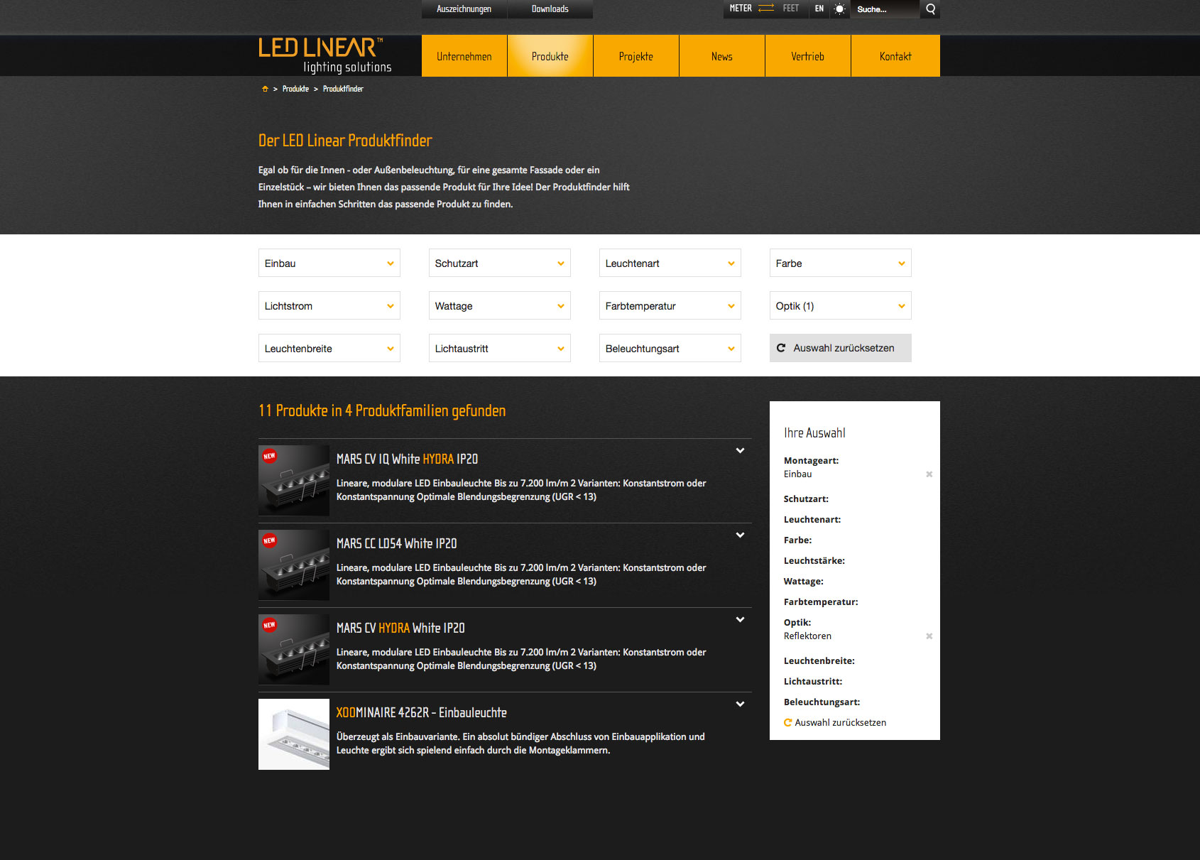 Der Produktfinder hilft Ihnen in einfachen Schritten, das passende Produkt nach folgenden technischen Eigenschaften zu filtern: