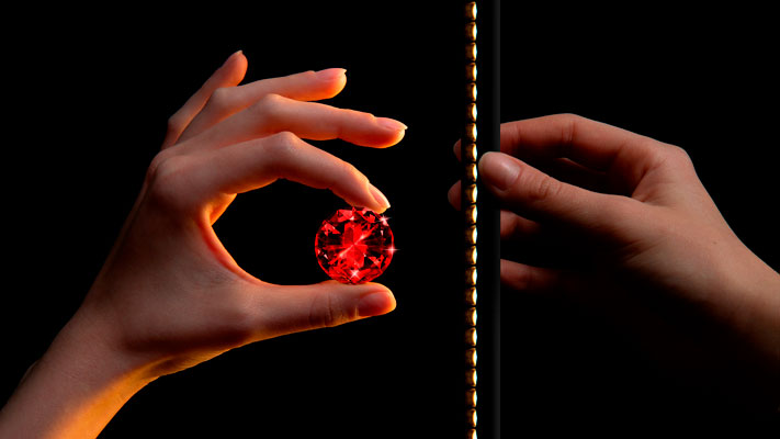 Zitat Light On: „Die Mikro-Lichtzerlegung wirkt durch die Kombination aus Warmweiß/Kaltweiß-Lichtfarben (2.700 K und 5.000 K) wie eine Vielzahl kleiner Sonnen, die mit Tausenden von Strahlen die Edelsteinfacetten zum Leuchten bringen. Schmuck und Edelsteine funkeln einen buchstäblich an, wenn man am Schaufenster oder den Vitrinen vorbeiläuft. Testen kann man diesen Effekt bereits mit einem günstigen, geschliffenen Zirkon".