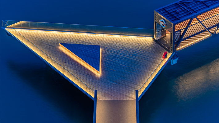 Die Lichtdesigner wählten aus den LED Linear™ Leuchtenfamilien XOOLUM™ IP67 und VENUS IP67 für den Handlauf und die Bänke, um eine warme Atmosphäre in den Pier zu bringen und den Fußgängern ein perfektes Orientierungslicht und ein sicheres Umfeld zu bieten.