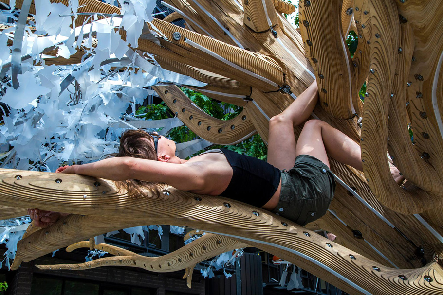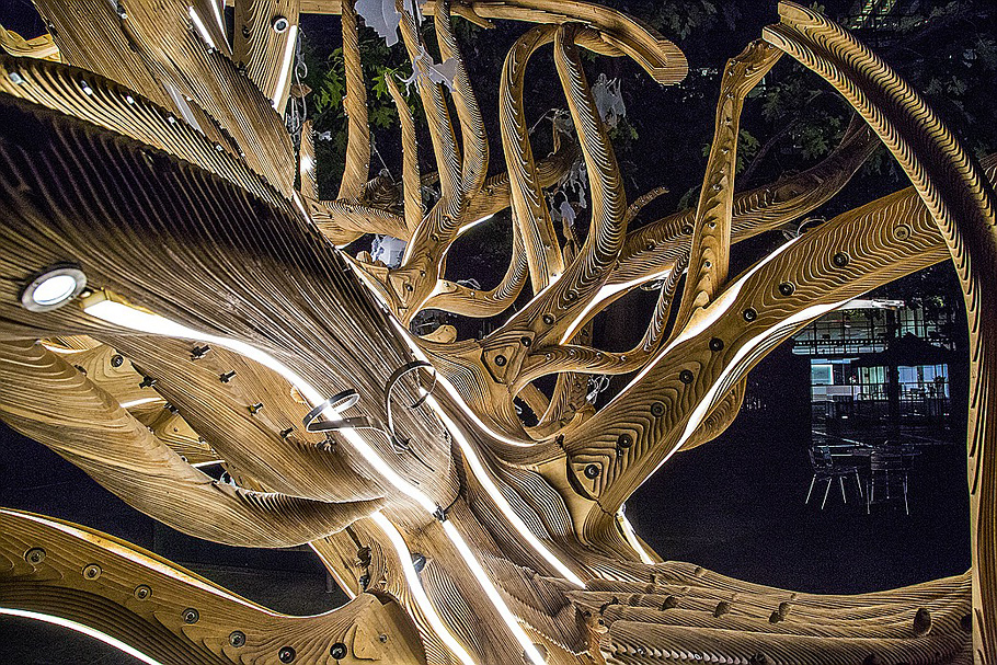 Its exuberant design mutates the wonder of natural trees with a structure that seek to nourish all the senses – celebrating both the geometric structures of nature, and the social structures of cities.