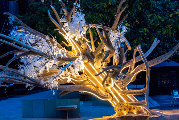 It previewed in Paternoster Square before commencing a weekly journey that stopped at Devonshire Square, the Gherkin, and Finsbury Avenue Square. By day it offered shade from the summer sun; by night it pulsed with an internal electric rhythm, its luminous veins illuminating the path to a constellation of lights in its limbs.