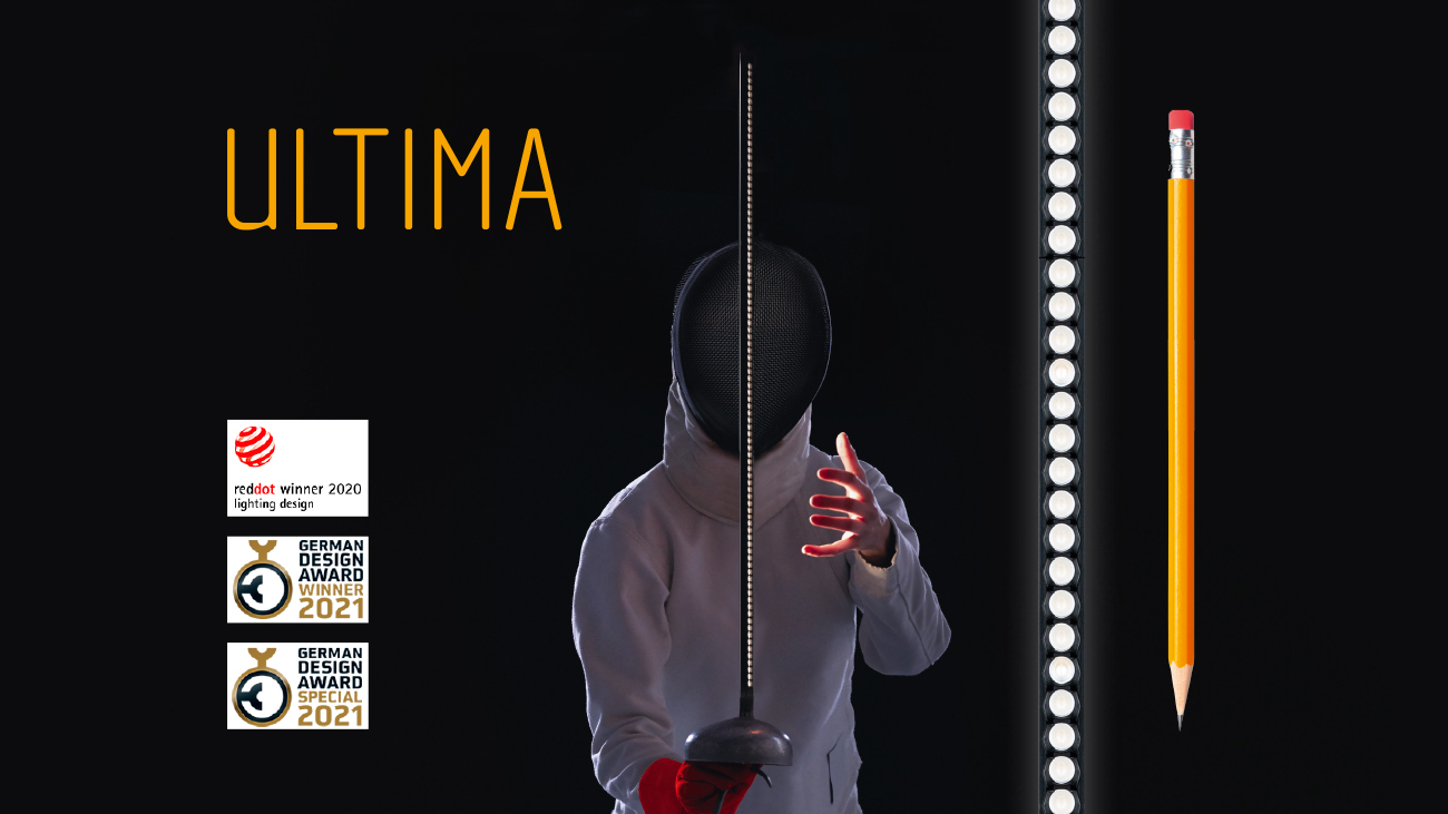 Winner für ULTIMA in der Kategorie „Excellent Product Design – Lighting” und Special Mention in der Kategorie „Excellent Product Design – Eco Design“. Der German Design Award zählt zu den renommiertesten Design-Awards weltweit und genießt weit über Fachkreise hinaus hohes Ansehen.