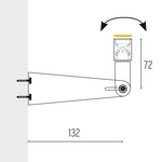Metal surface mounting adjustable wall arm. The set includes mounting block, mounting clip and adjusting screws. Tilts 140° in each direction and screw locks in position. Recommended to use for every 90 cm. Silver finish.