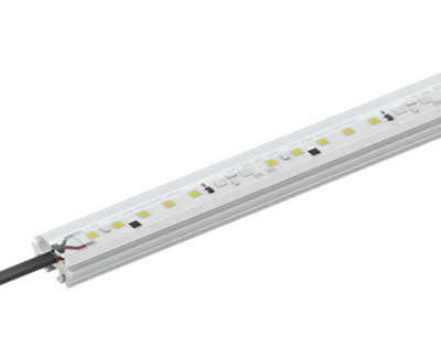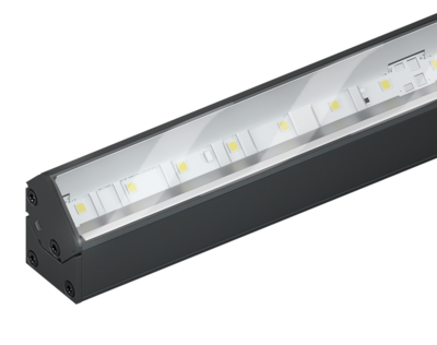 Wandfluter zur Anbaumontage mit kleinem Formfaktor, spiegelnden Reflektoren und einer Vielzahl an Lichtleistungen (380 lm/m bis zu 4.130 lm/m) und Farbtemperaturen.