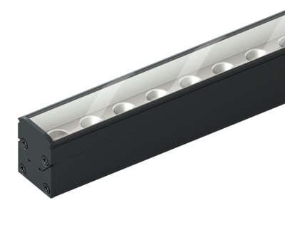 Nicht punktfreie Lichtlinie in kundenindividuellen Längen mit IP67-Steckverbindern an beiden Enden für die schnelle Installation von indirekten Fassadenbeleuchtungslösungen. Mit 10 verschiedenen Optiken erhältlich.