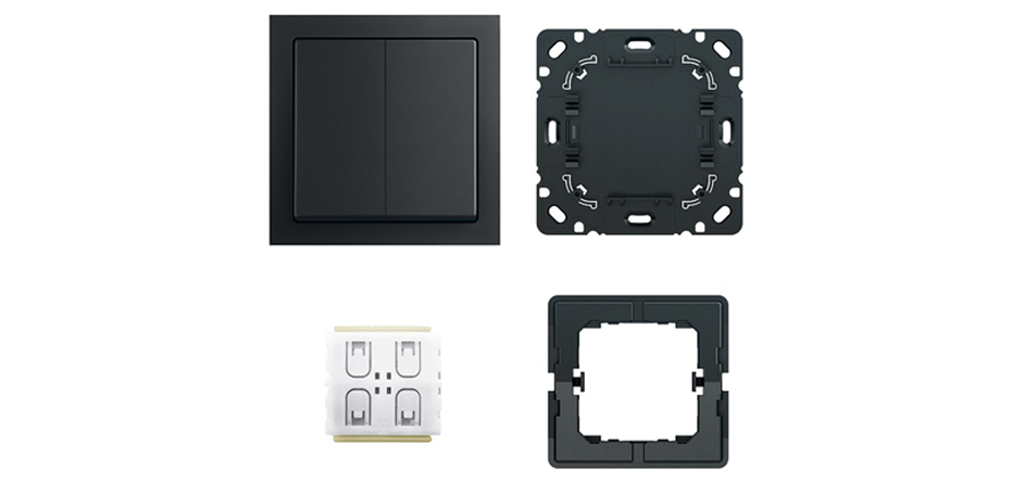 Batterieloser Bluetooth® Low Energy (BLE) Schalter mit EnOcean Energiegewinnungstechnologie. Design Future Linear schwarz matt (RAL 9005) und Linear studioweiß (RAL 9016). Kompatibel mit aruba, CASAMBI, enlighted, Fulham, Helvar, Hytronik, Qeedji, SILVAIR, Blu2Light (Vossloh Schwabe), WISILICIA, XICATO Controls. Busch Jäger 6716/01 UJ-885.