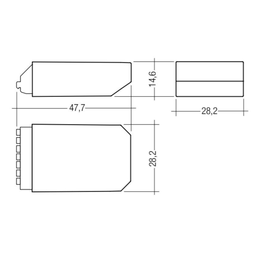 Eingangsstufe mit großem Spannungsbereich, die es dem Benutzer ermöglicht, von 15 V bis 48 V DC anzuschließen. Schaltung mit geringer EMB (elektromagnetischer Beeinflussung) zur Reduzierung von Interferenzen mit umliegenden Installationen.