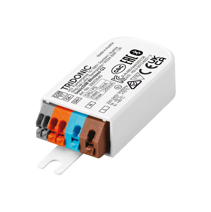 CASAMBI zu DALI® Gateway für bis zu 25 DALI® Treiber (DT6/DT8). Direkter Anschluss an Netzspannung. Komissionierung via CASAMBI App.