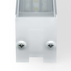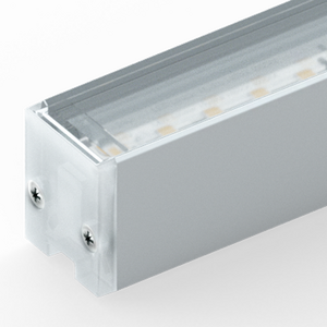 Screwed translucent end caps for continuous rows and an optimal sealing at both ends of the luminaire.