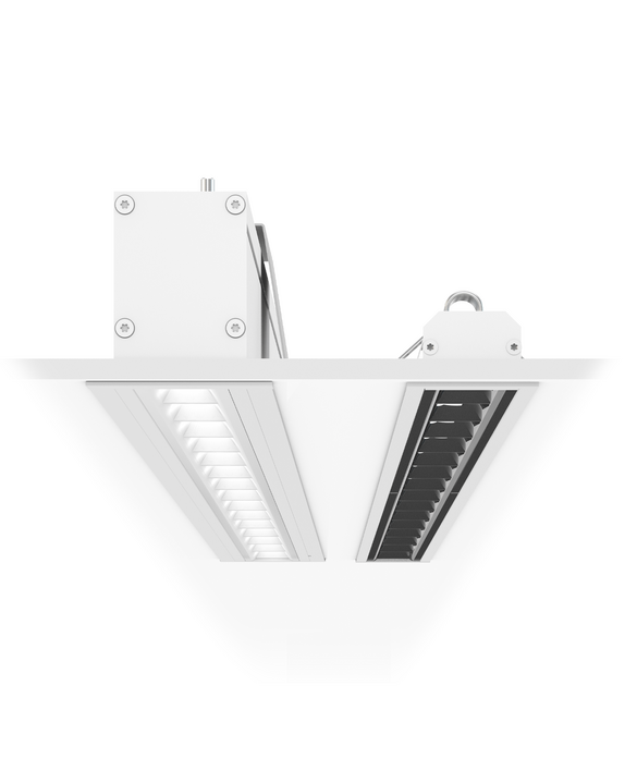 Echte Nano-Linsenoptiken mit 4 symmetrischen Winkeln plus ein Wandfluter, sorgen dank Entblendung für fast unsichtbare Lichtquellen und einen UGR bis zu <8 (abhängig von der Variante). Eine zusätzliche Variante mit opalem Diffusor ergänzt die Optionen.