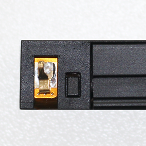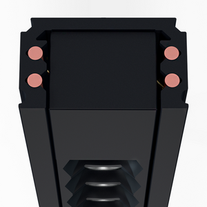 Endkappe mit elektrtischen Kontakten, die eine einfache Kontaktierung in der Schiene ermöglichen. Klicken Sie das ULTIMA-T-Modul einfach in das vorinstallierte Schienensystem, ohne sich um komplexe Verkabelungen kümmern zu müssen.