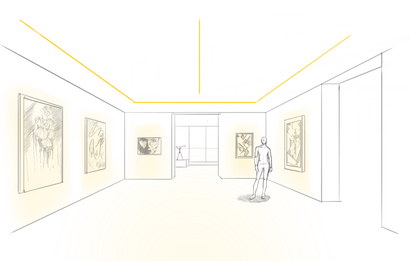 Jedes Lichtmodul kann durch einfaches verschieben innerhalb seiner Schiene frei bewegt werden. Dies bietet die volle Flexibilität, die z. B. an dynamischen Orten wie Galerien oder Ausstellungsräumen.