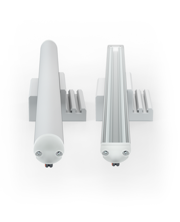 Erhältlich mit diffuser Abdeckung oder 60°-Linearlinse. Transluzente Endkappen sorgen für Lichthomogenität innerhalb der Voute und vermeiden Dunkelstellen.