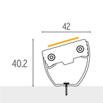 Anbau-Montagewinkel, 2042 mm, wird mit Schrauben an der Oberfläche angebracht. Leuchte kann in Stufen von 5° innerhalb des Winkels geneigt werden. Zur besseren Blendungsbegrenzung für vorbeigehende Personen.