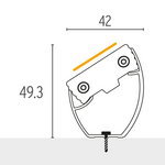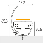 Anbau-Montagewinkel, 5 cm lang. Wird mit Schrauben an der Oberfläche angebracht. Leuchte kann in Stufen von 5° innerhalb des Winkels geneigt werden. Verwendung alle 50 cm empfohlen.