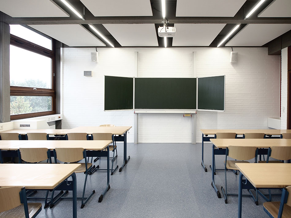 Hocheffiziente Reflektoren mit exzellenter Entblendung (UGR < 16) für die Aufgabenbeleuchtung sowie opale Abdeckung für Anwendungen als breitstrahlende Umgebungsbeleuchtung.