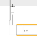 Die vertikal abgependelte Leuchte wird mit Pendeldraht und Kabel in 4 m Länge geliefert. Ebenso enthalten sit der nötige Deckenbefestiger, der für abgehängte und Betondecken verwendbar ist.