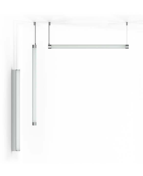 Die Variante für den Wandanbau kann in jeder beliebigen Ausrichtung und auch an Decken installiert werden. Die Länge kann,abhängig von der gewählten Lichtquelle, bis zu einer Maximallänge von 4 m frei gewählt werden.