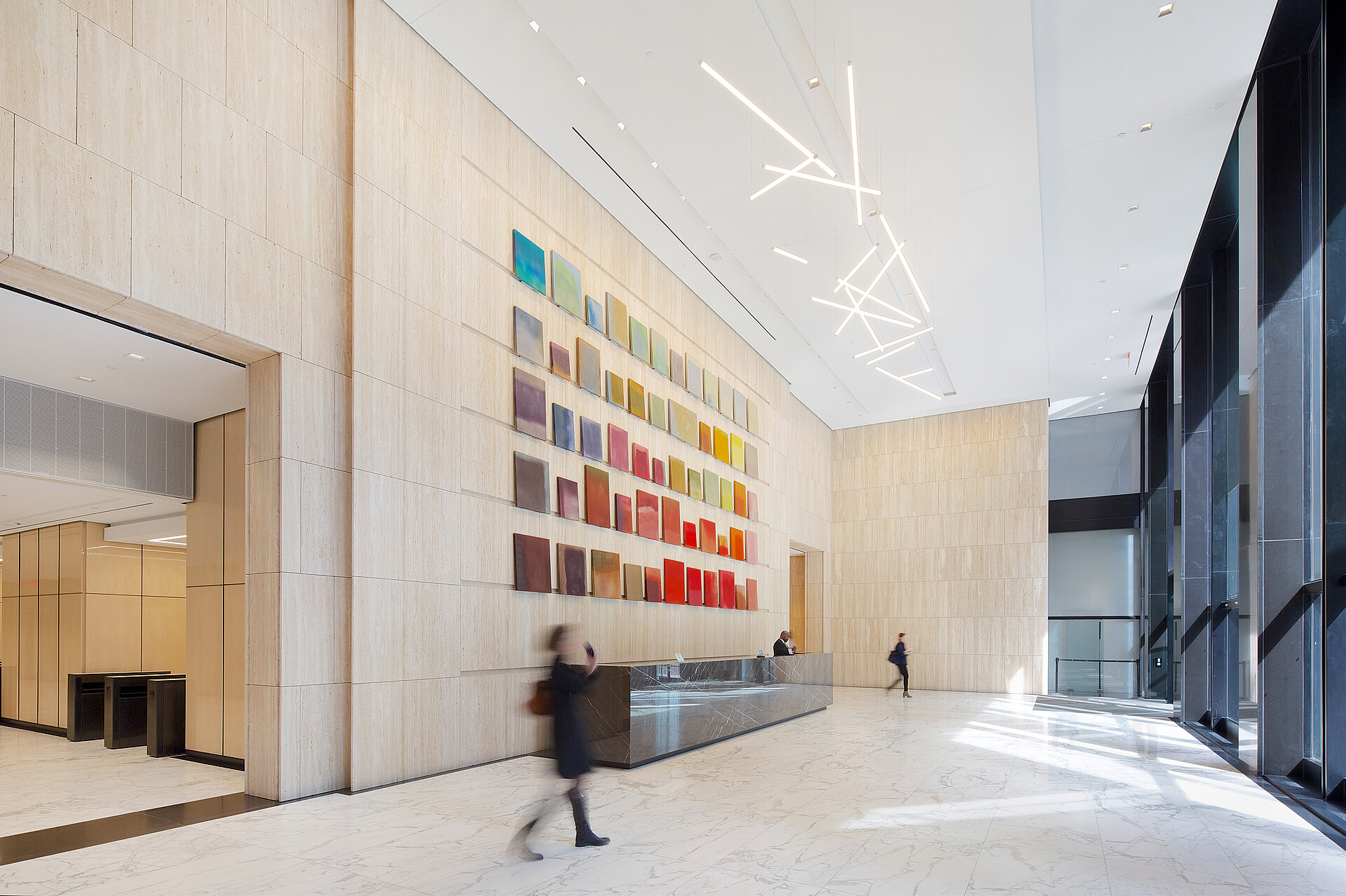 90 Park Avenue liegt am Tor zum Geschäftsviertel Midtown und am nördlichen Ende des beliebten Wohnviertels Murray Hill. Das 90 Park Avenue liegt nur wenige Schritte vom Grand Central Terminal, der New York Public Library und den Gaststätten entfernt wie der Cipriani 42nd Street und dem Grand Hyatt Hotel. Vornado hat kürzlich ein großes Programm zur Kapitalverbesserung abgeschlossen, das eine modernisierte Lobby, Aufzüge und modernisierte mechanische Systeme umfasst, um dieses Gebäude in ein hochmodernes Gebäude der Klasse A zu verwandeln. Die Lobby wird mit einem außergewöhnlichen Lichtkonzept beleuchtet und ist ein echter Hingucker. Die Lichtdesigner entschieden sich für die elegante Pendelleuchte XOOTUBE™ als überdimensional langes Mobilé.