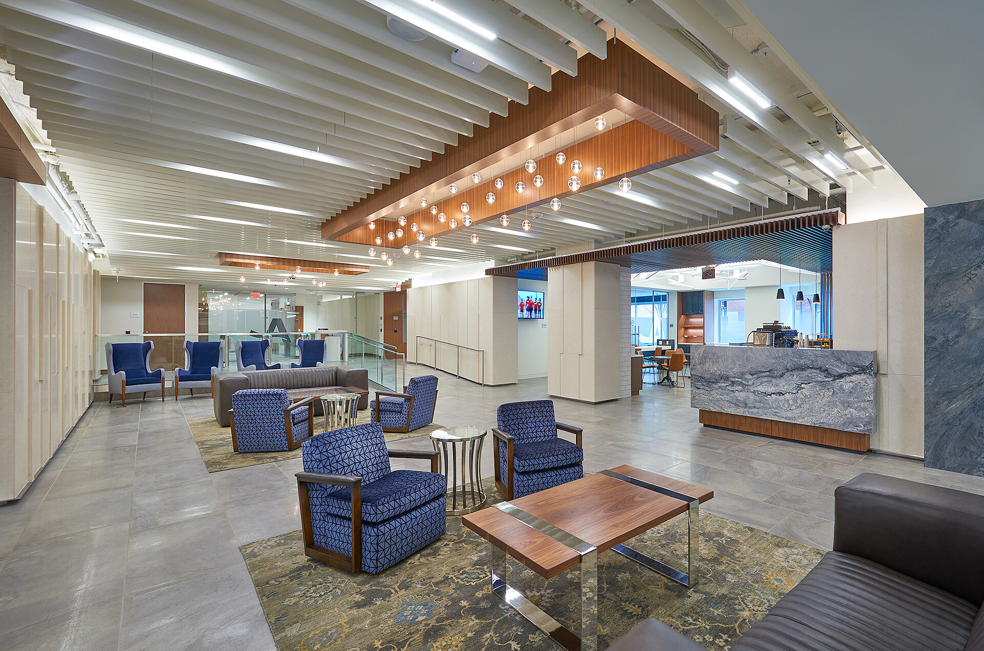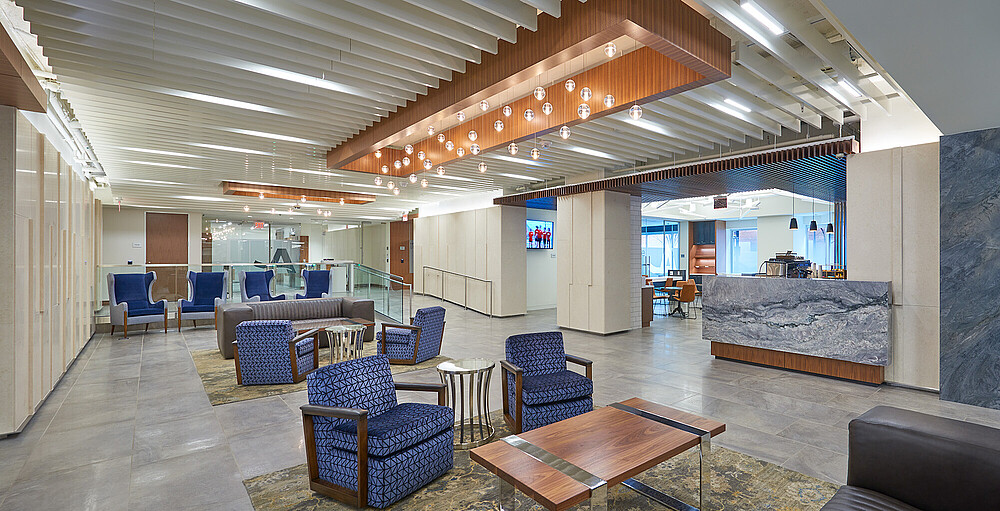 AARP suchte einen neuen, modernen Raum und beide Gebäude wurden komplett entkernt und neu aufgebaut, um ihre Vision zu unterstützen. Zu den Renovierungsarbeiten zählten Aufzugshallen, ein Auditorium mit audiovisuellen und Videokonferenzsystemen, neue Büros, Konferenzräume und Vorratskammern etc., wo in Teilen die Leuchte XOOLINE™ als harmonische Leuchte für eine optimale Lichtstimmung integriert wurde.