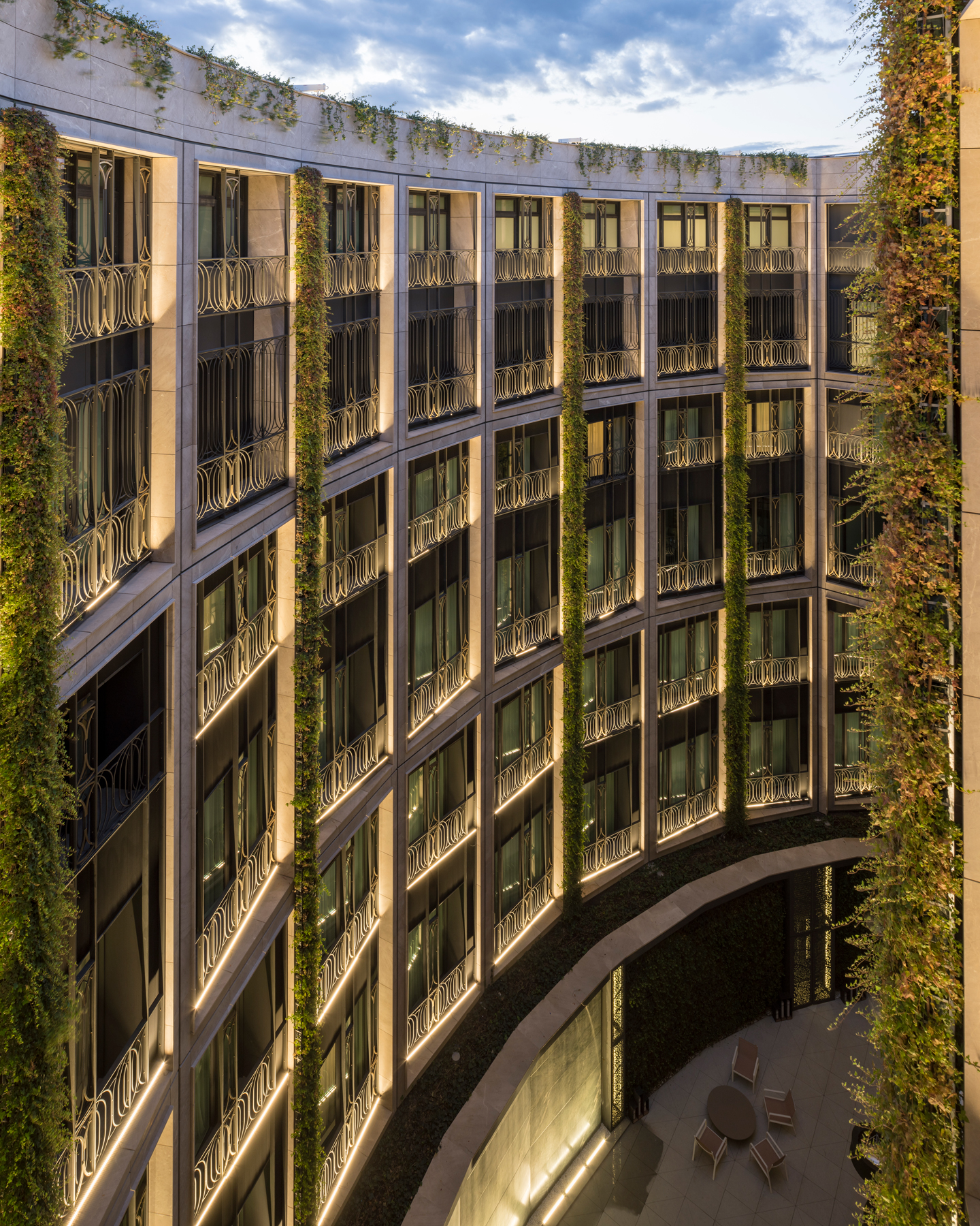 Eine der Prioritäten war es, die Ästhetik zu wahren und den Innenhof aufzuwerten. Das Licht der XOOLUX™ NANO hebt die Armaturen und Öffnungen einer einzigartigen Architektur hervor, die mit warm beleuchteten Pflanzentexturen verkleidet ist, was diesen Raum zu einem freundlicheren Ort macht.