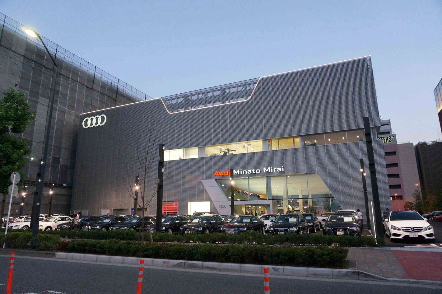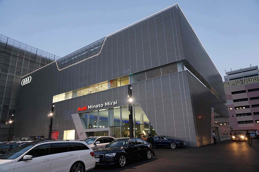 Fassadenbeleuchtung der Audi Hauptzentrale in Tokio, Japan.