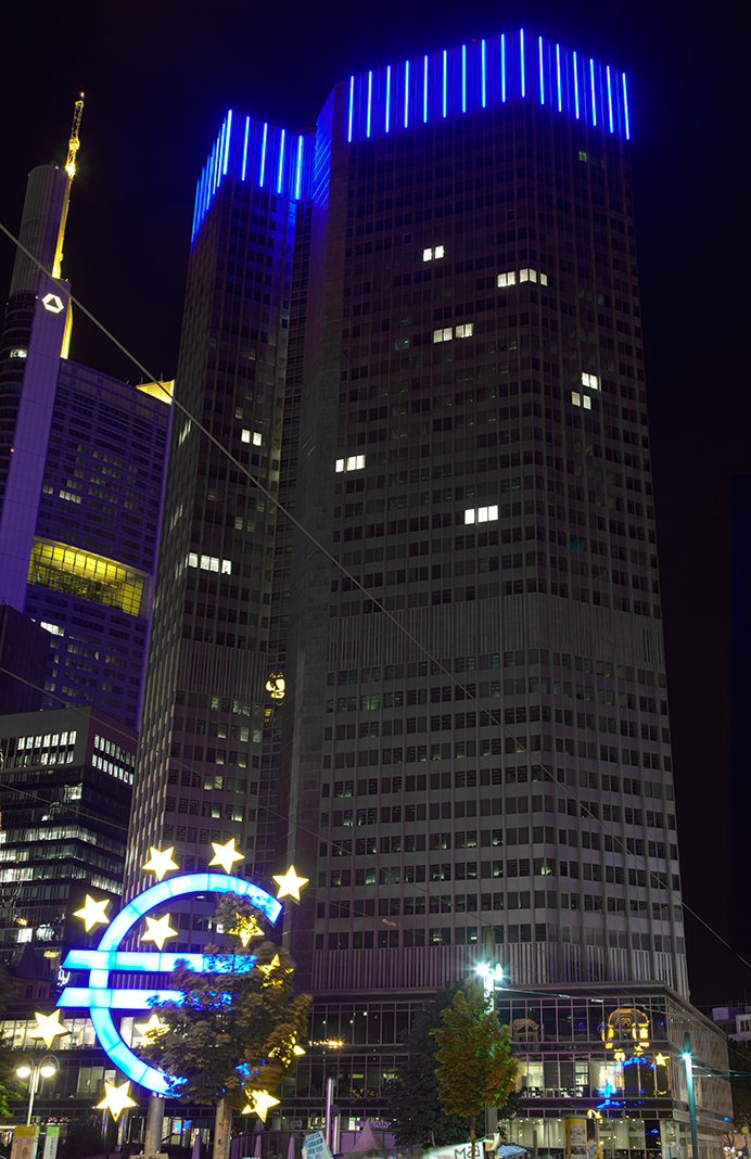 Die VarioLED™ Flex VENUS strahlt hell an der Spitze des 150 m hohen Euro Towers in Frankfurt.