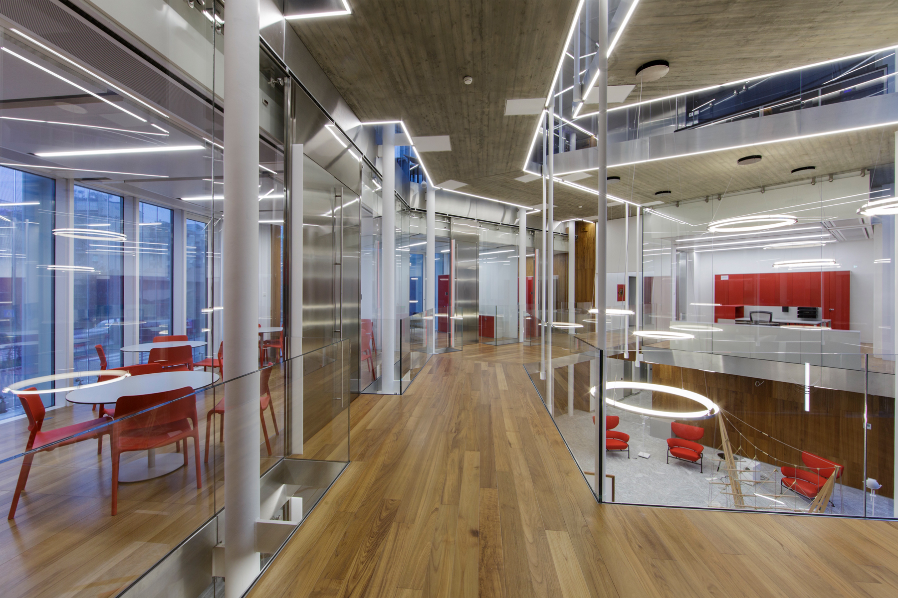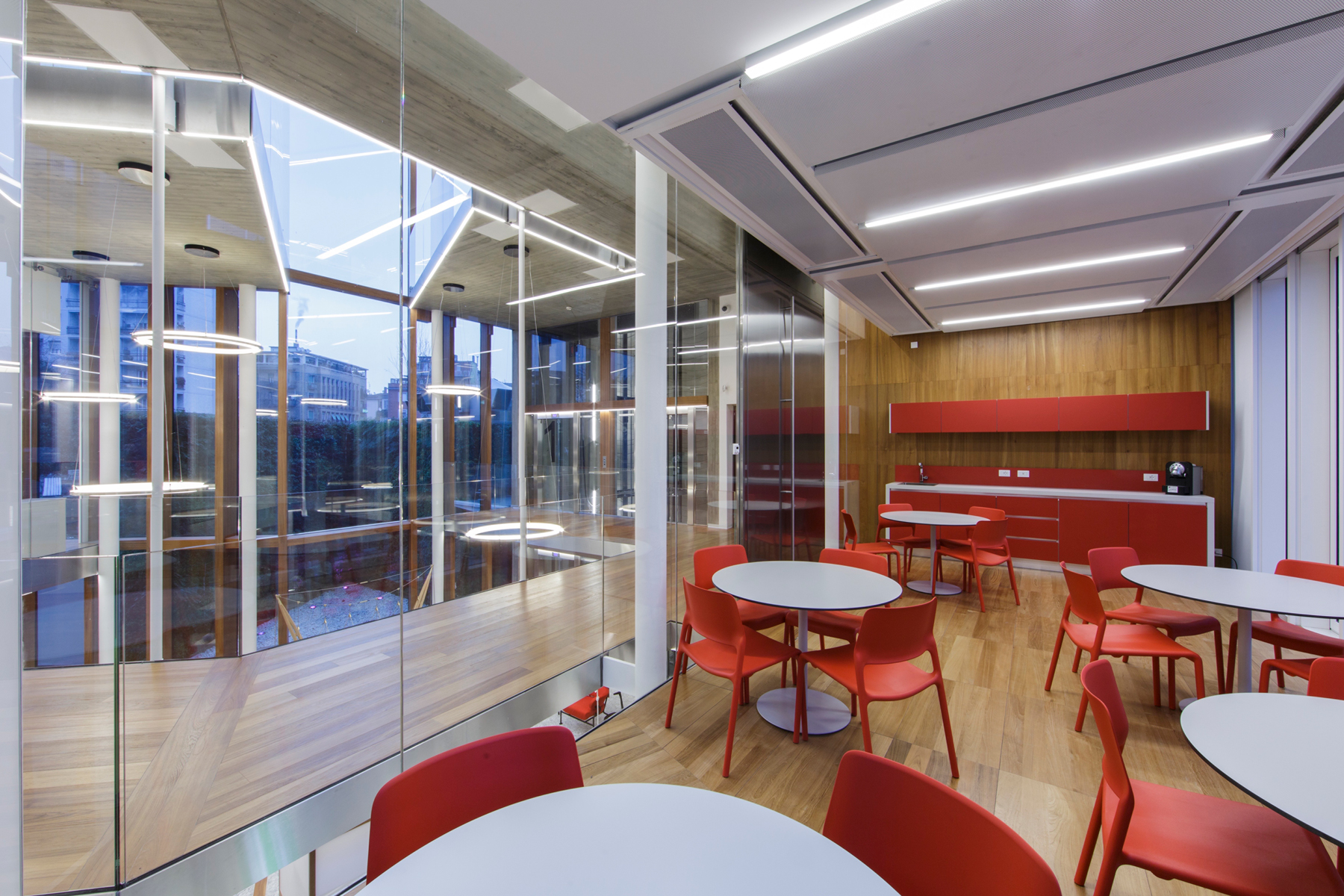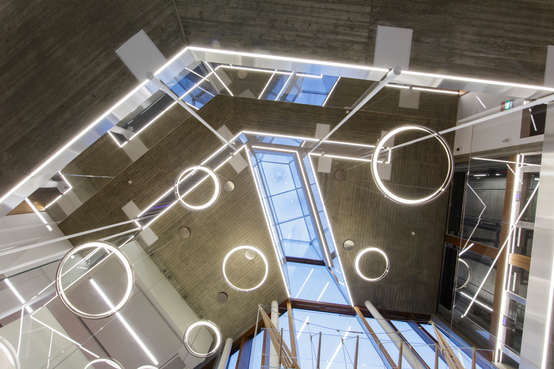 Für diesen Firmensitz des mailländischen Unternehmens wurde funktionales Licht in den Fluren, Hallen und Untergeschossen eingesetzt. In den verschiedenen Anwendungsbereichen befinden sich die Produkte XOOLINE™ HD15 mit opaler Abdeckung in 3.000 Kelvin sowie VENUS Lichtlinien in RGB.