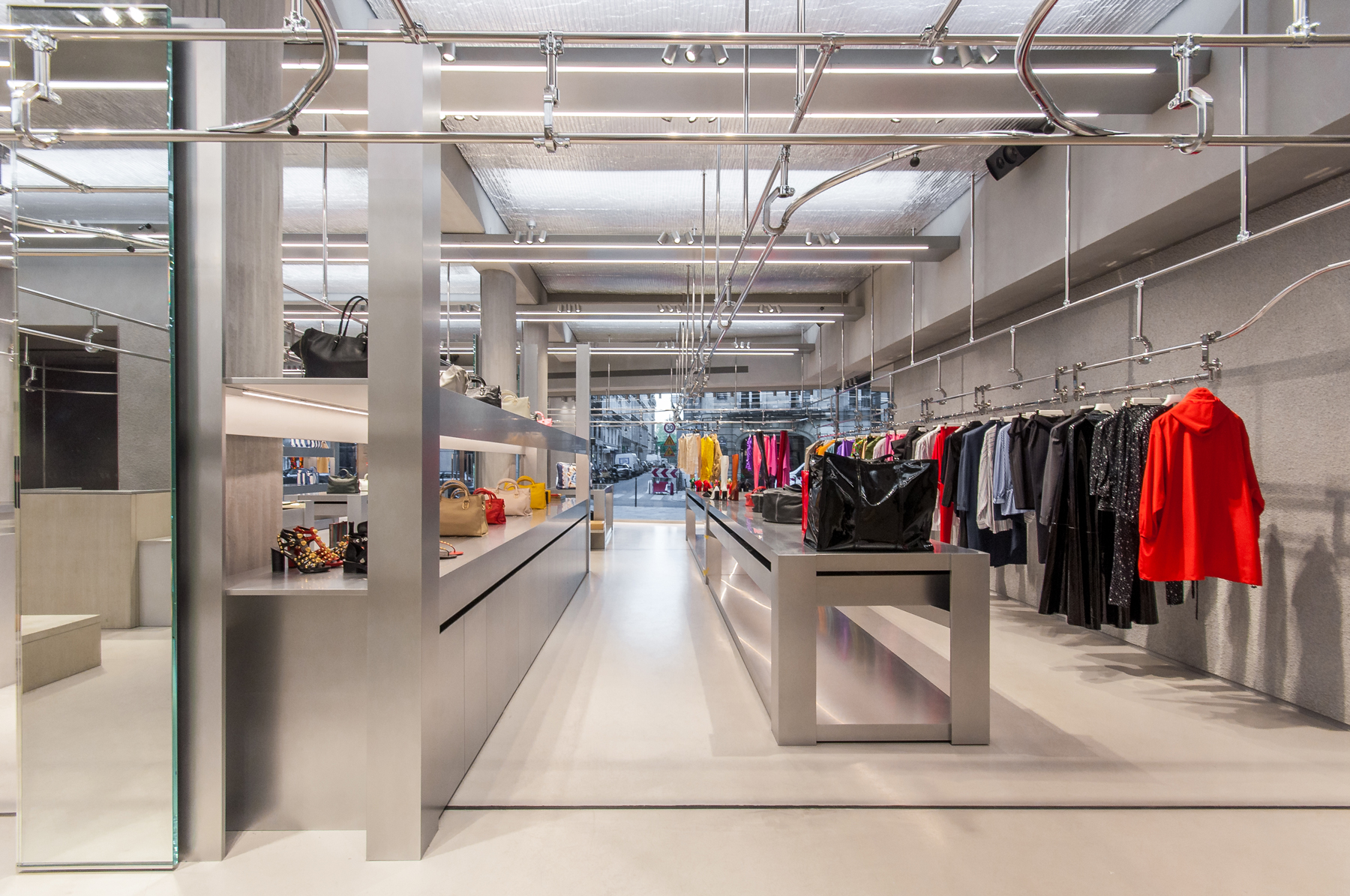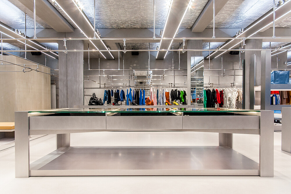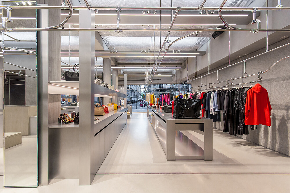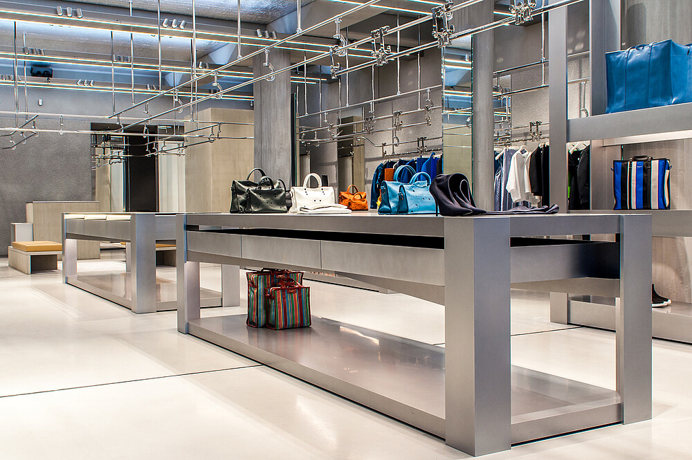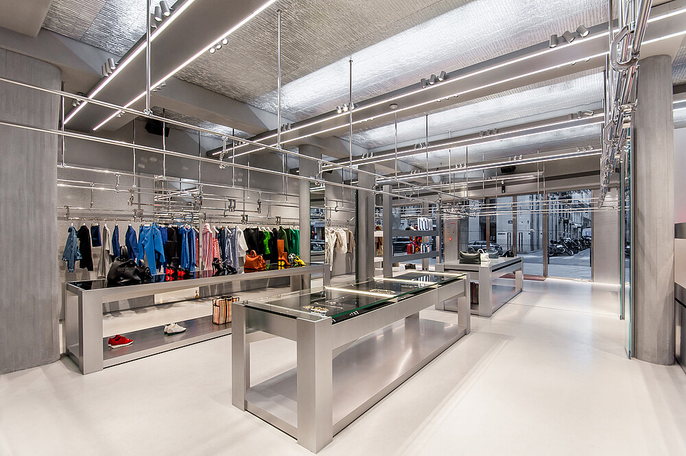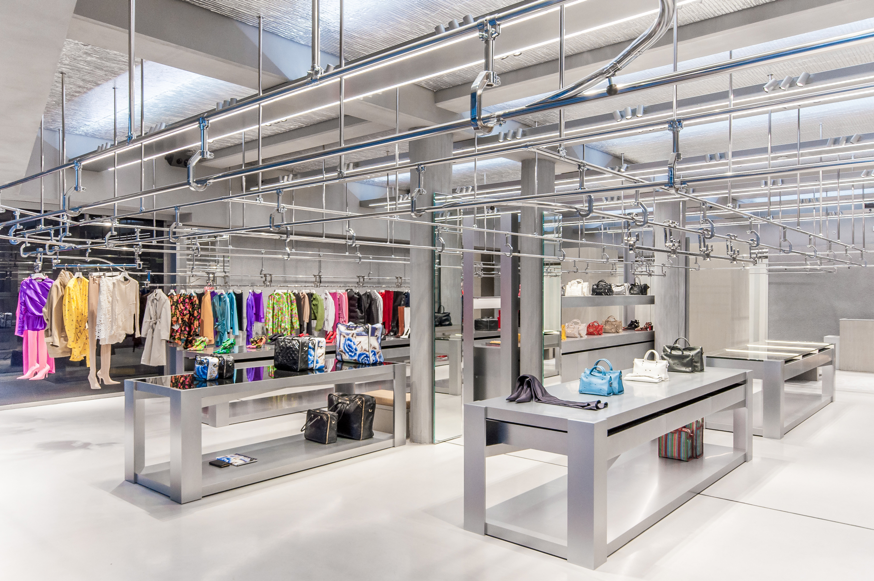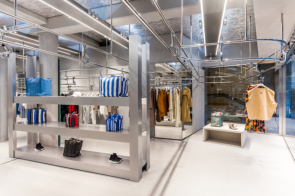 Im Zuge der kreativen Neuausrichtung der renommierten Modemarke Balenciaga hat das Architekturstudio Gonzalez Haase AAS aus Berlin für den Flagship-Store in der edlen Pariser Einkaufsmeile Rue Saint Honoré ein innovatives Konzept entwickelt. Die neue Innenarchitektur zeichnet sich durch eine klare Formensprache aus; großformatige Ladentische und ein markantes System aus abgehängten Edelstahlrohren präsentieren die Waren in neu interpretiertem Industrial-Look. Bei der Entwicklung und technischen Umsetzung des Lichtkonzeptes arbeitete AAS eng mit den Lichtplanern von Licht Kunst Licht zusammen. Das daraus resultierende Zusammenspiel von Technologie und Stil unterstreicht das exklusive Image von Balenciaga mit einem erfrischenden visuellen Erlebnis für den Kunden.