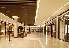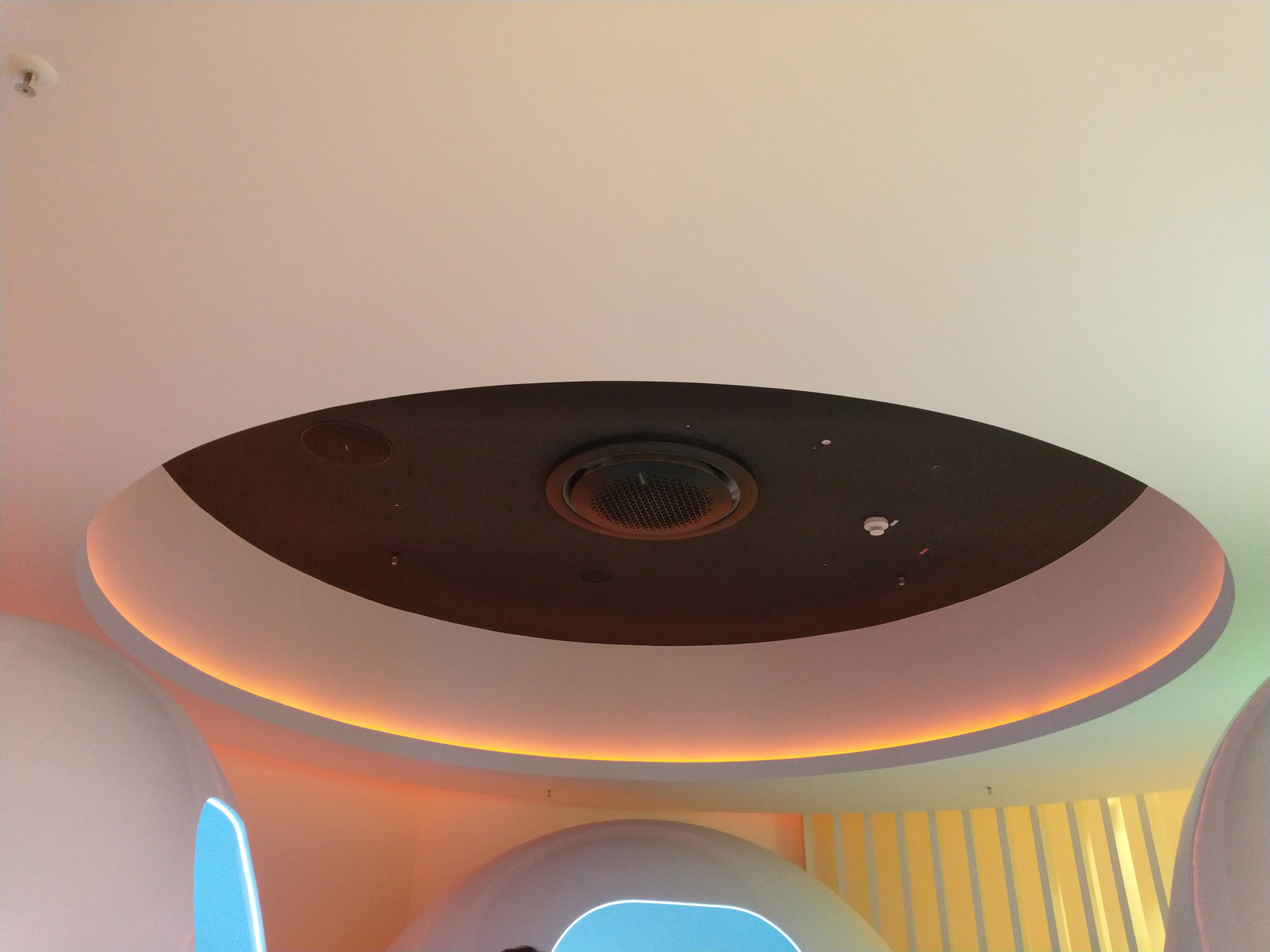 Die individuelle und farblich aufeinander abgestimmte Deckenbeleuchtung wurde mit den flexiblen Design-Lichtlinien der VENUS-Familie realisiert: SKYLLA Side View in 2.700 Kelvin, NIKE Top View Side Bend in 3.000 Kelvin und VENUS RGB in der Side View-Variante.