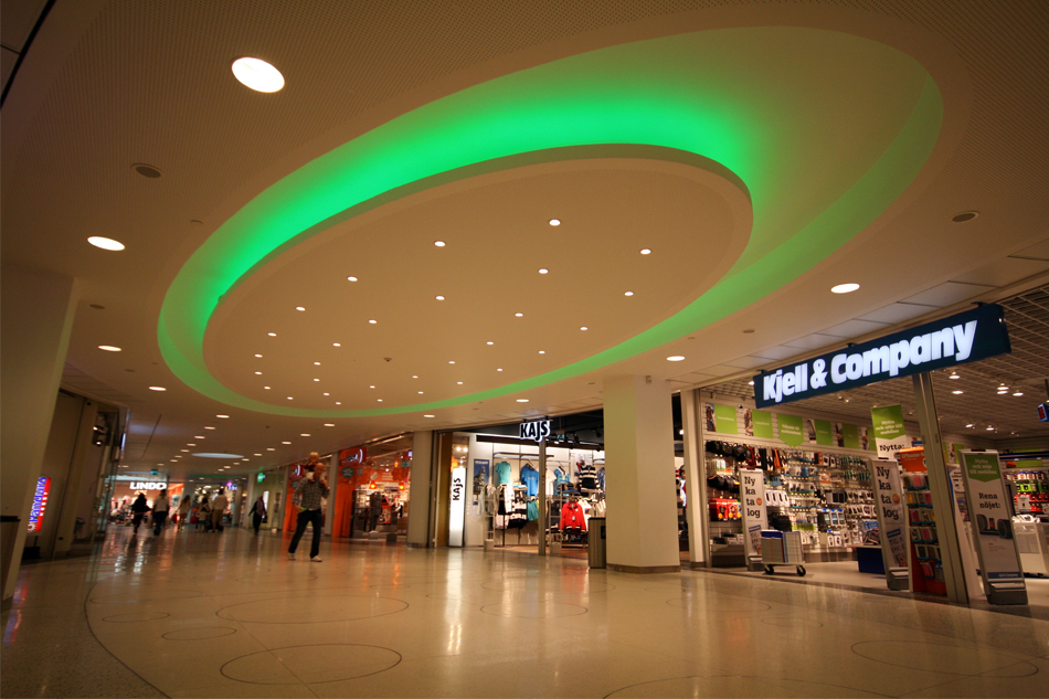In der Frölunda Torg Shopping Mall, einem der größten Shoppingcenter in Skandinavien, wurde mit der VarioLED™ Flex RGB 2S als Voutenbeleuchtung ein eindrucksvoller Akzent gesetzt.