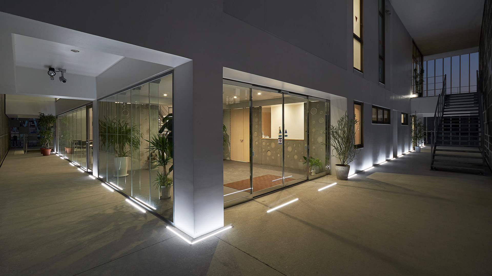 Giken CO., LTD. ist ein Betonhersteller mit Sitz in Okinawa. Bei der Sanierung des Unternehmens sollte ein Lichtleitsystem im Boden rund um die Büros integriert werden, ohne die Gesamtstruktur des Gebäudes und der Gänge zu stören. Bestens geeignet dafür ist die ADONIS, die als dünne Lichtlinie im Boden schöne Akzente setzt.