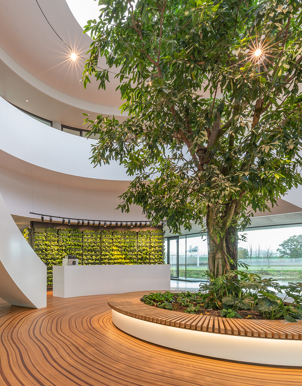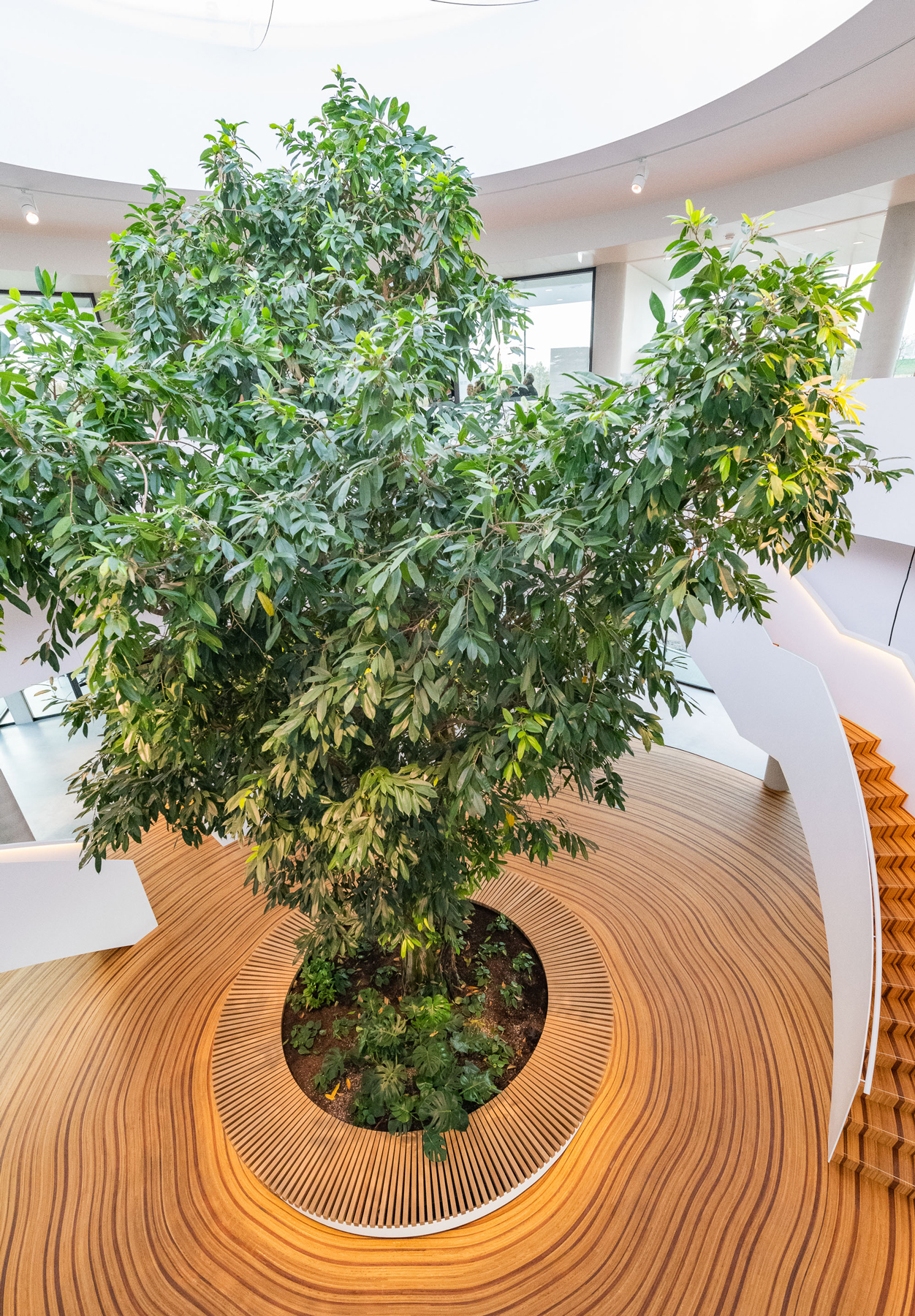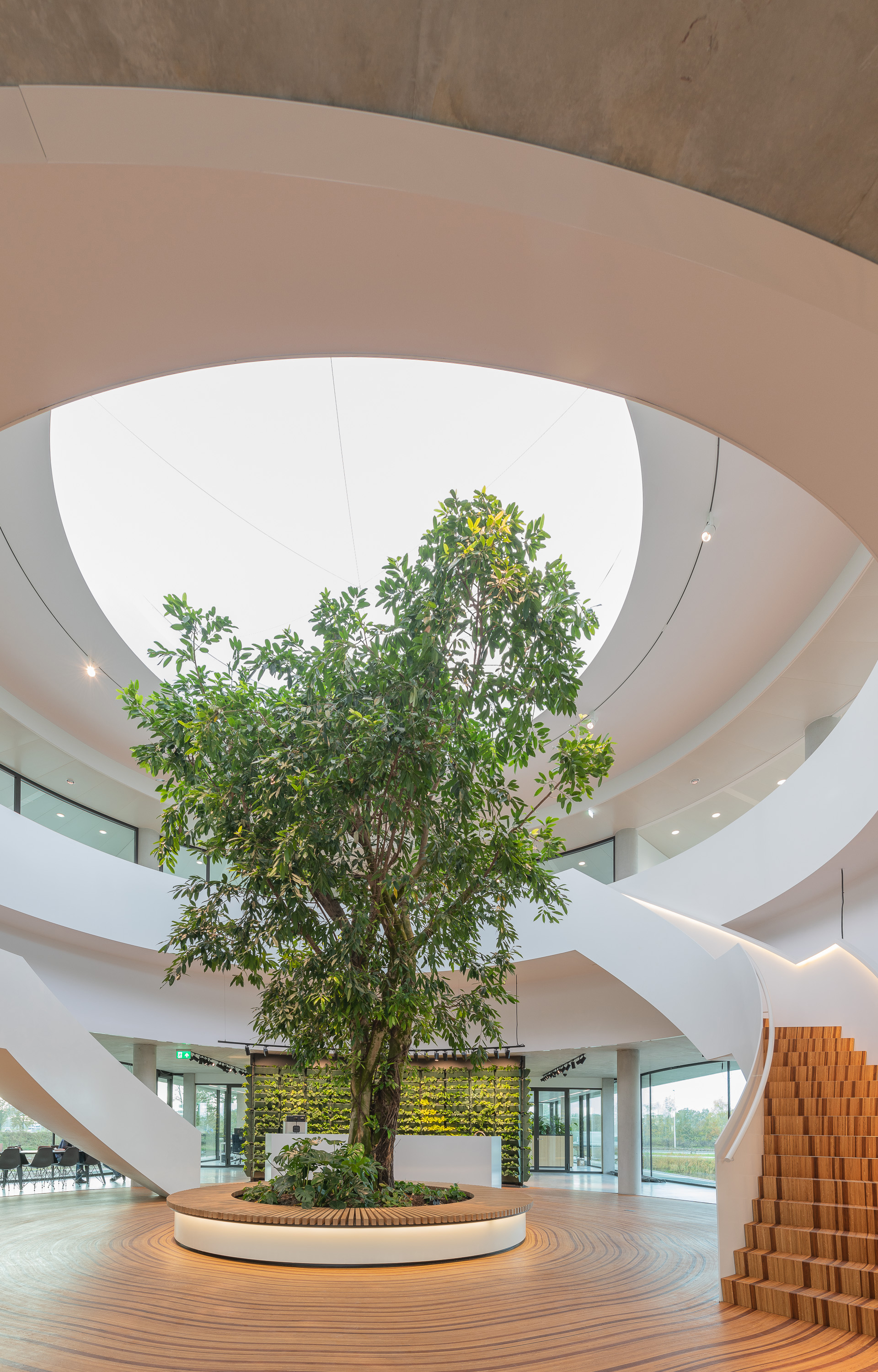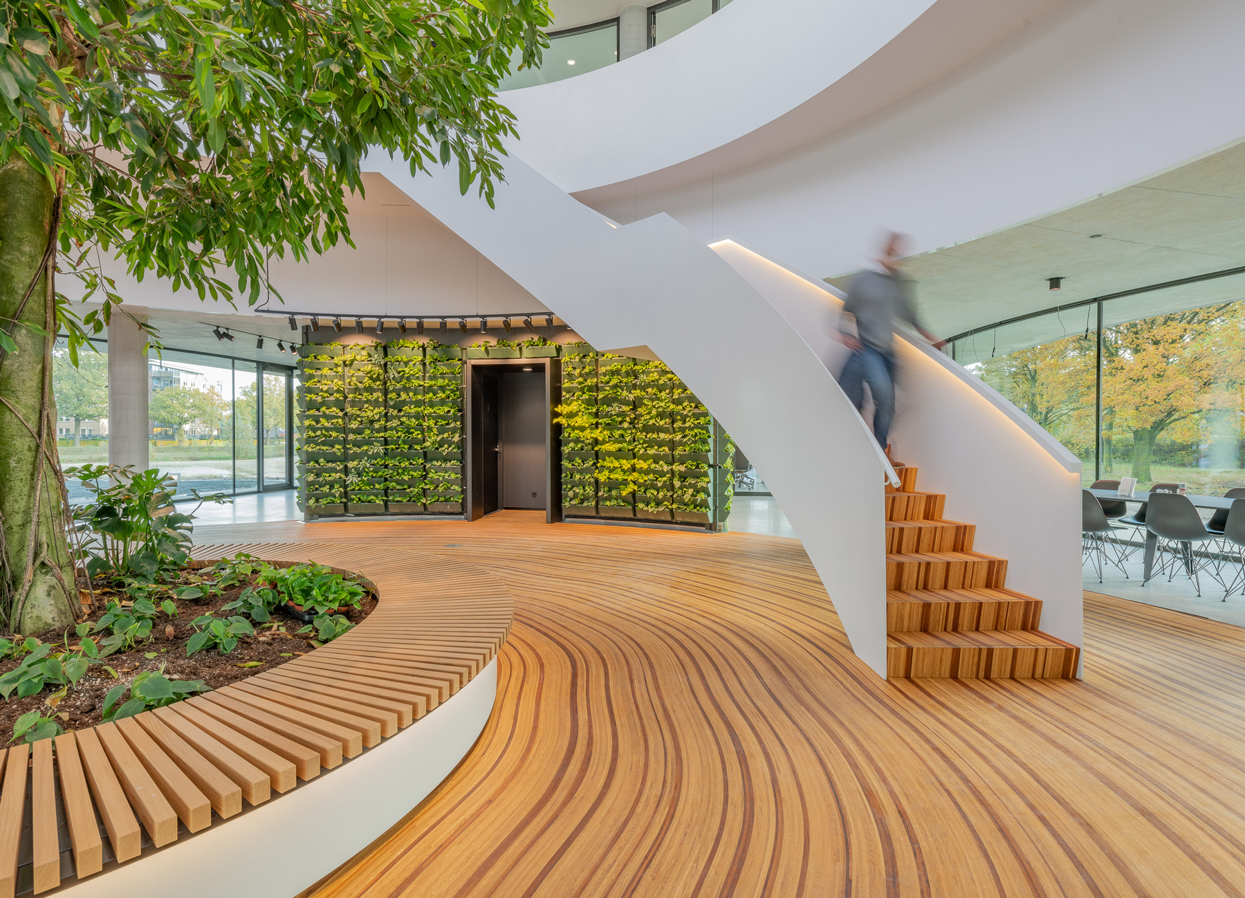 Der Hauptsitz des Landschaftsbauers Krinkels B.V. ist ein wahres Juwel. Durch viel Grün und organische Formen wurde ein Raum geschaffen, der sowohl spektakulär ist als auch sich perfekt in die Landschaft einfügt. Die Kombination des beeindruckenden Holzbodens und der Treppe ist ein charakteristischer Bestandteil des Entwurfs von Paul de Ruiter Architects. Q-CAT Lighting hat dazu beigetragen, das Design der Treppen und der Bank hervorzuheben und die Linien hervorzuheben. Dies basiert auf der Planung der Lichtdesigner von Beersnielsen. Die flexiblen Lichtlinien von LED Linear™ unter dem Handlauf der Treppe sorgen für einen raffinierten indirekten Lichteffekt und tragen auch zum Sicherheitsaspekt bei. Die in die Bank integrierte Lichtlinie setzt dieses Element frei und erhöht so die Dynamik des Raumes. VarioLED™ Flex PHOBOS Top View- und Side View in der Lichtfarbe 3.000 K und 3.300 K wurden in mehreren kundenspezifischen Längen eingesetzt.