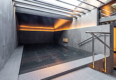 Im Eingangsbereich des Hotels wurde die Bodeneinbauleuchte OCEANOS installiert, um die Betonwand zu beleuchten und einen einzigartigen Eindruck zu erzeugen. Der von außen einsehbare Innenkorridor ist mit der VarioLED™ Flex PHOBOS ausgestattet, die in jeder Etage an der Decke installiert worden ist, um das Gebäude auch bei Nacht stilvoll in Szene zu setzen.