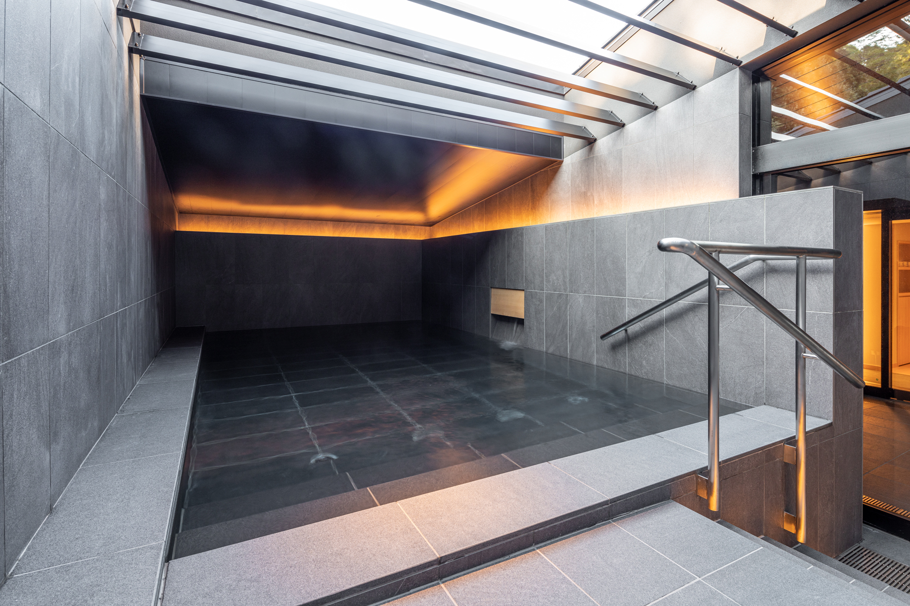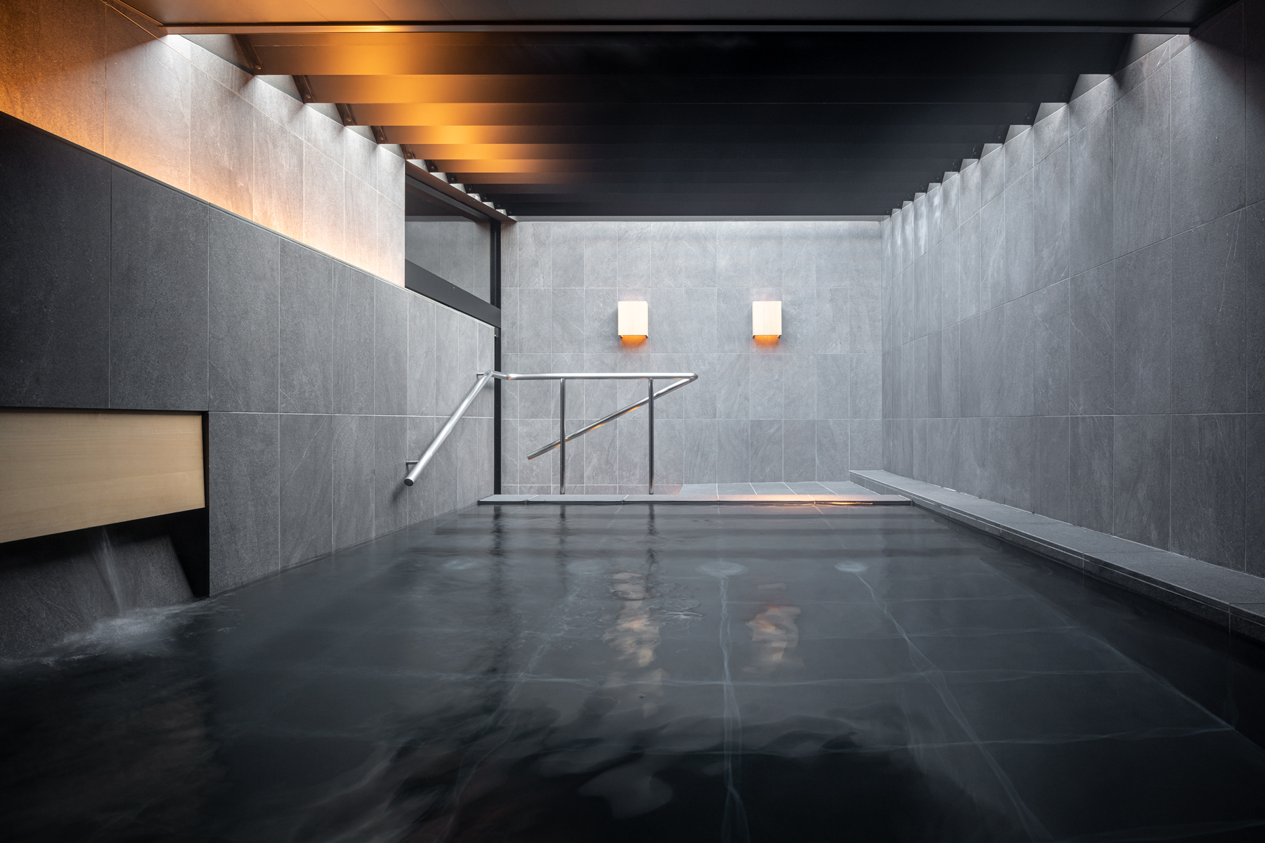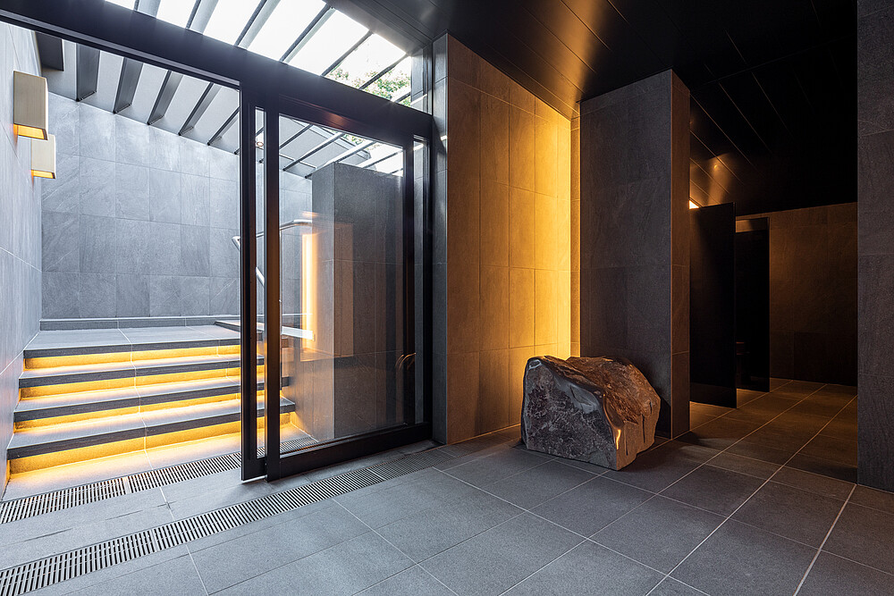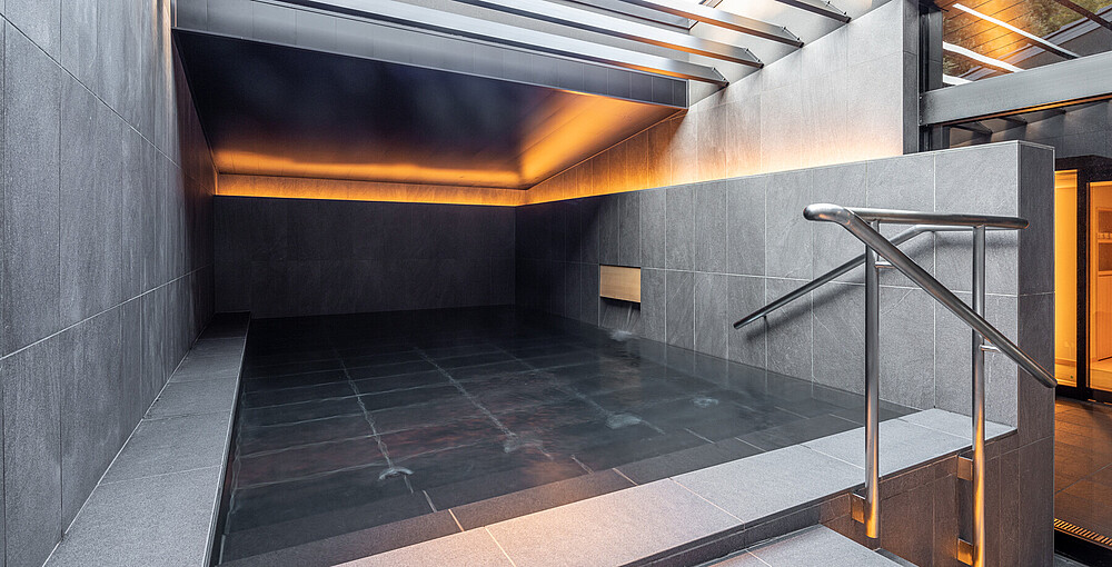 In den verschiedenen Bädern wurde eine Mischung aus indirekter Beleuchtung installiert, um eine entspannte Umgebung zu schaffen. Die ADONIS IP67 sowie die SKYLLA-Leuchten der VarioLED™ Flex VENUS-Familie sind stilvoll auf den Stufen, an den Wänden, im Außenbad und im Waschbereich installiert.