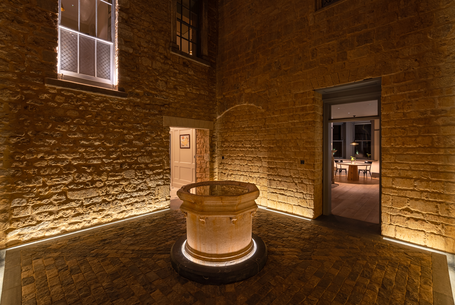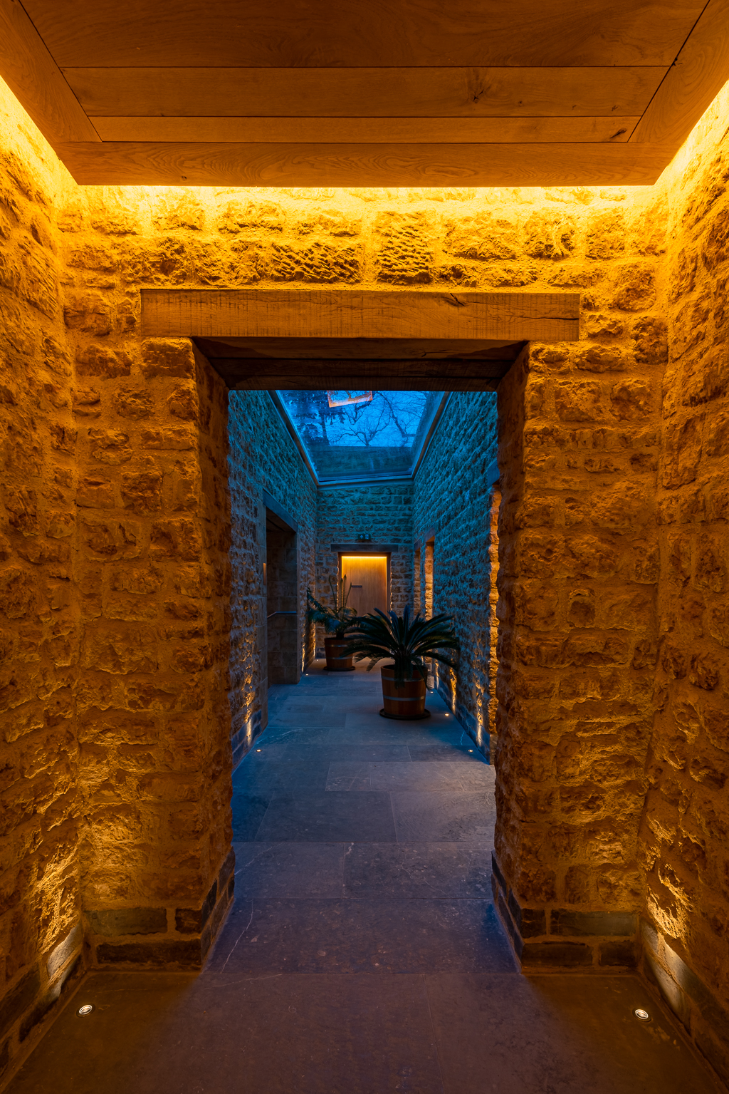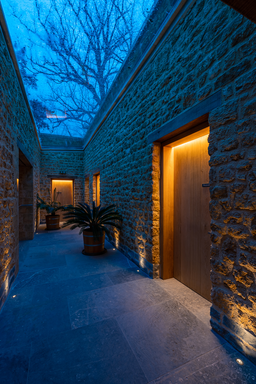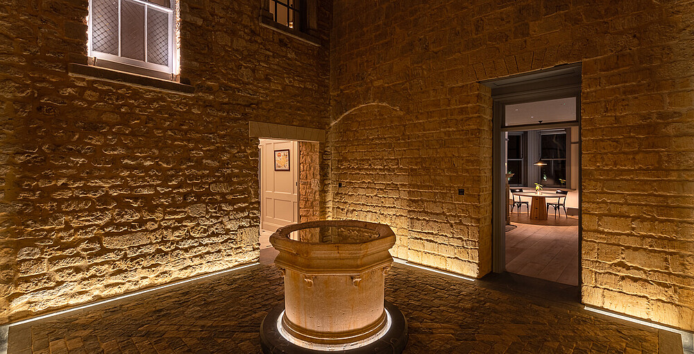 The Newt in Somerset ist eine Neugestaltung des 230 Jahre alten Anwesens Hadspen House in ein luxuriöses Gastgewerbe mit öffentlichen Bereichen und Gärten. Das Lichtdesign fungiert als kohärentes Element, das die vielen Einrichtungen des Projekts miteinander verbindet.