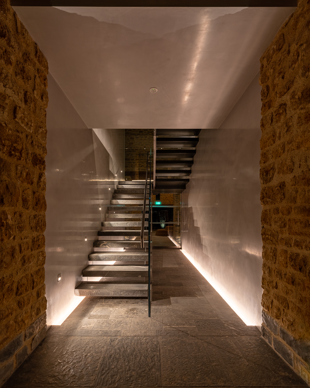 Die wunderbare Formen und Texturen reagieren sehr gut auf das Lichtdesign in einer Reihe von Gästehäusern