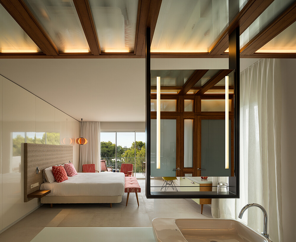 Das stilvolle Hotel Cala Esmeralda zeichnet sich durch seine beeindruckende Lage über dem idyllischen Strand von Cala Esmeralda aus und wird damit zum idealen Ort für einen unvergesslichen Urlaub in erster Strandreihe. Hier herrscht ein entspanntes Ambiente, das perfekt zur ibizenkischen Bauweise in Cala d'Or passt, gepaart mit einer hochwertigen Innenausstattung, die bis ins kleinste Detail durchdacht ist.