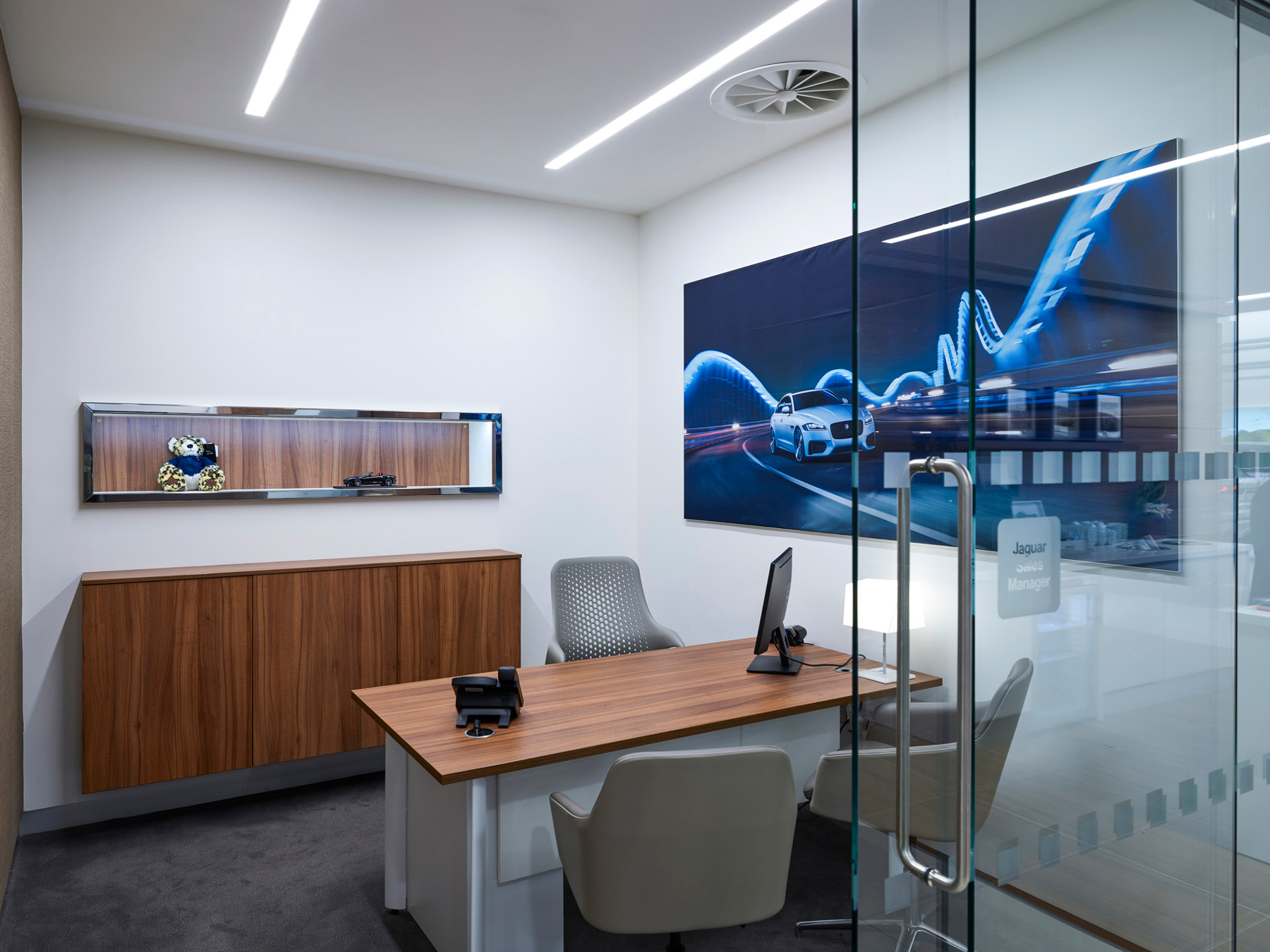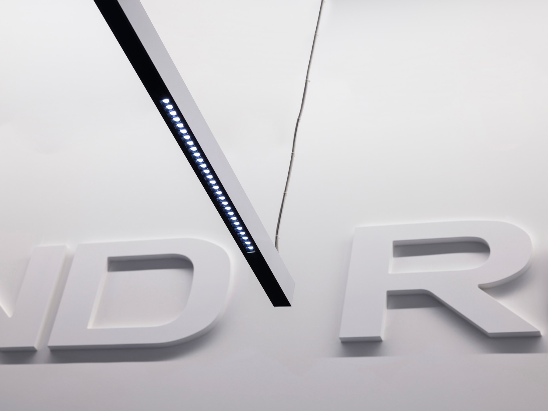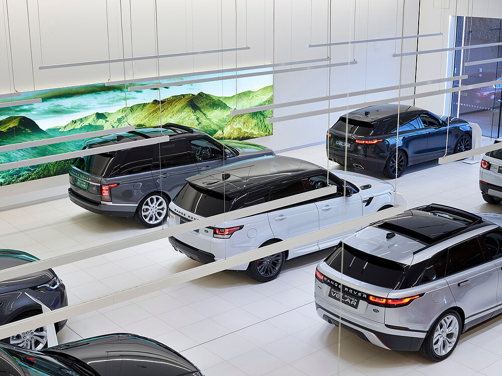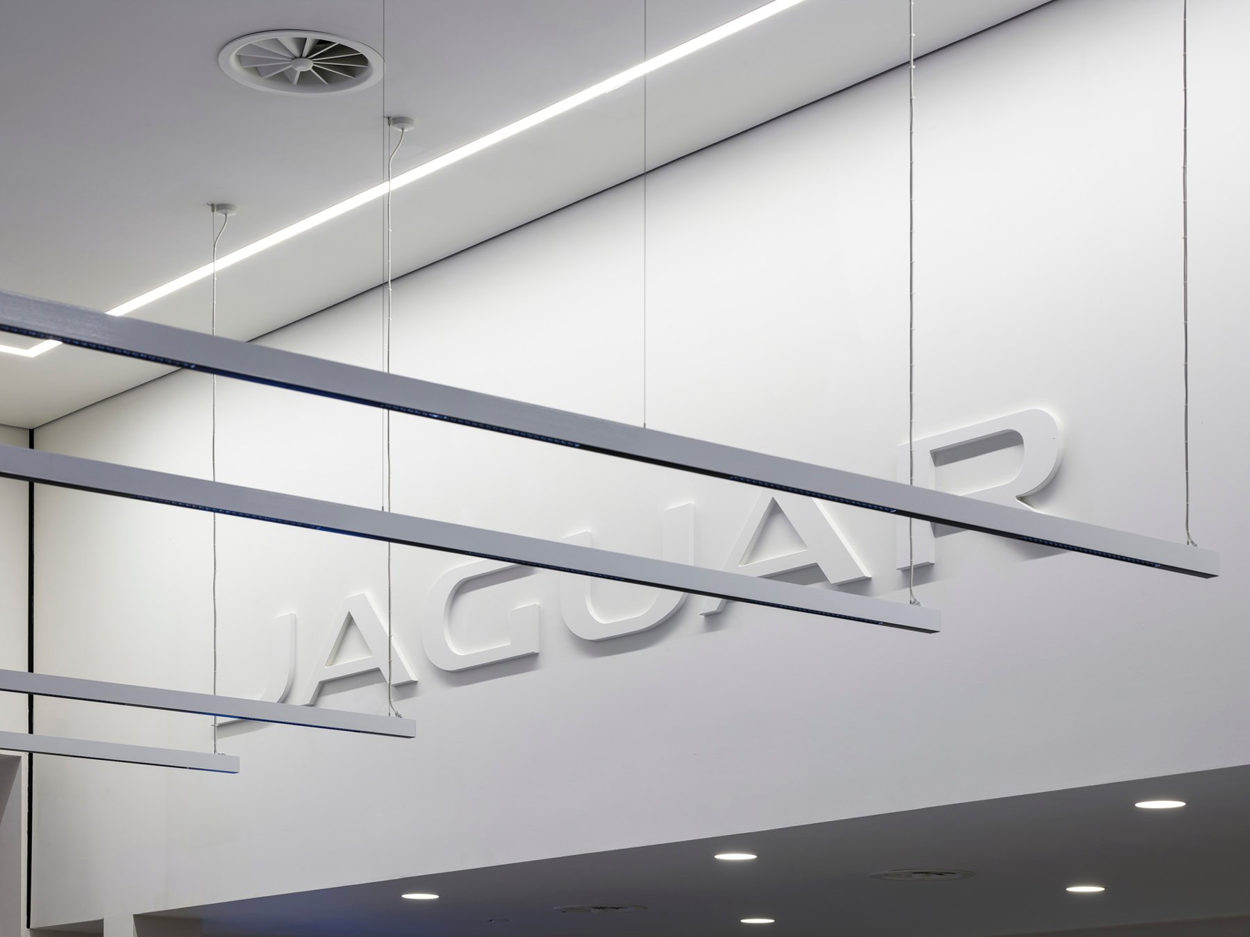 Speziell für Jaguar Land Rover wurde eine abgependelte Sonderlösung entwickelt, die zusammen mit weiteren Standardvarianten der MARS ARCHITECTURAL-Familie im Projekt eingesetzt wird. Neben Produkten aus der MARS ARCHITECTURAL-Familie kam auch flexibles LED-Band im Profil zum Einsatz.
