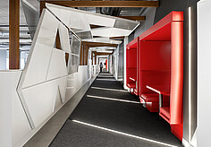 Für das einheitliche Beleuchtungskonzept fiel die primäre Wahl auf die MARS ARCHITECTURAL-Familie – eine elegante, lineare und flexibel einsetzbare Lösung für die Allgemeinbeleuchtung, die mit minimalistischer Formensprache und maximaler Licht- und Designwirkung punktet. Dank vielfältiger Montagemöglichkeiten ist sie als Einbau-, Decken- oder Pendelleuchte geeignet. Das innovative Leuchtensystem mit Nano-Optiken liefert bis zu 108 lm/W bei der Farbwiedergabe eines Ra-Wertes von bis zu 95. Die optimale Blendungsbegrenzung durch eine schwarz mattierte Oberfläche (Black Glare Reduction) ermöglicht eine Blendungsbewertung von UGR < 13 und liefert qualitativ hochwertiges und angenehmes Licht.
