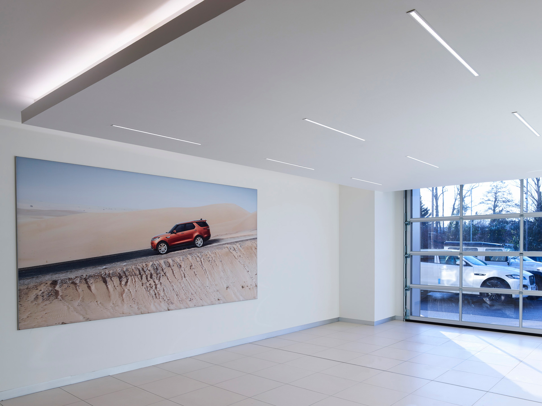 Land Rover ist der weltweit führende Hersteller von Geländewagen und Allradfahrzeugen und Jaguar eine der weltweit führenden Luxusmarken für Sportlimousinen und Sportwagen. LED Linear™ ist – zusammen mit den Schwesterunternehmen LTS und Fagerhult – offizieller weltweiter Beleuchtungsausstatter der Showrooms für Jaguar Land Rover. Der lichtdurchflutete Showroom in Watford mit seinen weitläufigen Räumlichkeiten erfordert sehr lange lineare Leuchten, die sich optisch und individuell leicht integrieren lassen.