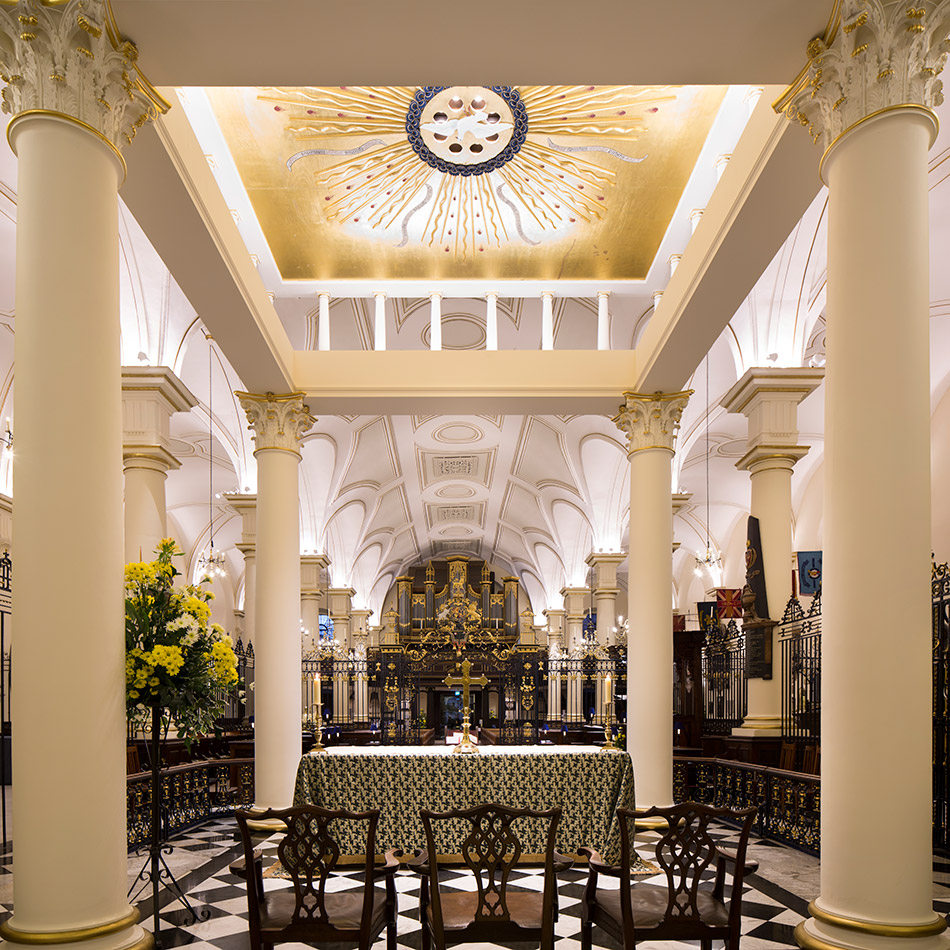 Lichtdesigner James Morse wurde beauftragt, das neue Lichtschema zu entwerfen und spezifizierte die VarioLED™ Flex HYDRA LD25 in 2.700 K um eine Reihe von Bereichen zu beleuchten. Im Erdgeschoss werden die Fensterbögen von insgesamt 12 Leuchten in Szene gesetzt. Im oberen Bereich wird die gewölbte Decke von 54 auf den Säulen montierten Leuchten illuminiert, wodurch die imposante Deckenarchitektur hervorgehoben wird. In der Kapelle bieten sechs in der Höhe montierte Leuchten eine Beleuchtung für die Glasfenster.