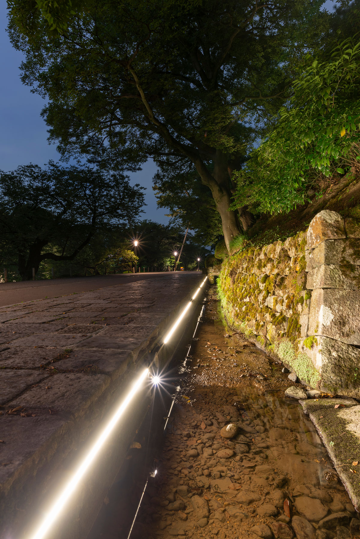 Die flexible Designleuchte VENUS wurde mit großer Präzision auf den Stufen des Baches installiert, der zwischen der Straße und der Steinmauer verläuft. Das Hauptziel war es, die natürliche Schönheit der Natur zu betonen und eine fesselnde Atmosphäre zu schaffen, die sowohl tagsüber als auch nachts zum Hingucker wird. Besonders bemerkenswert ist die subtile Wirkung der VENUS IP67, welche die grüne Farbe des Mooses hervorhebt.