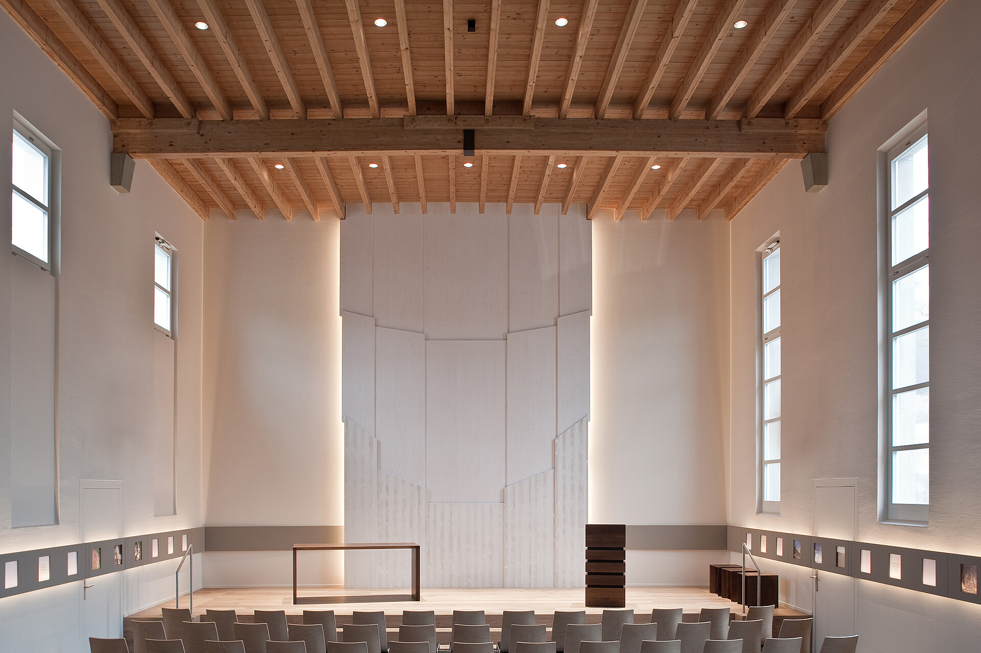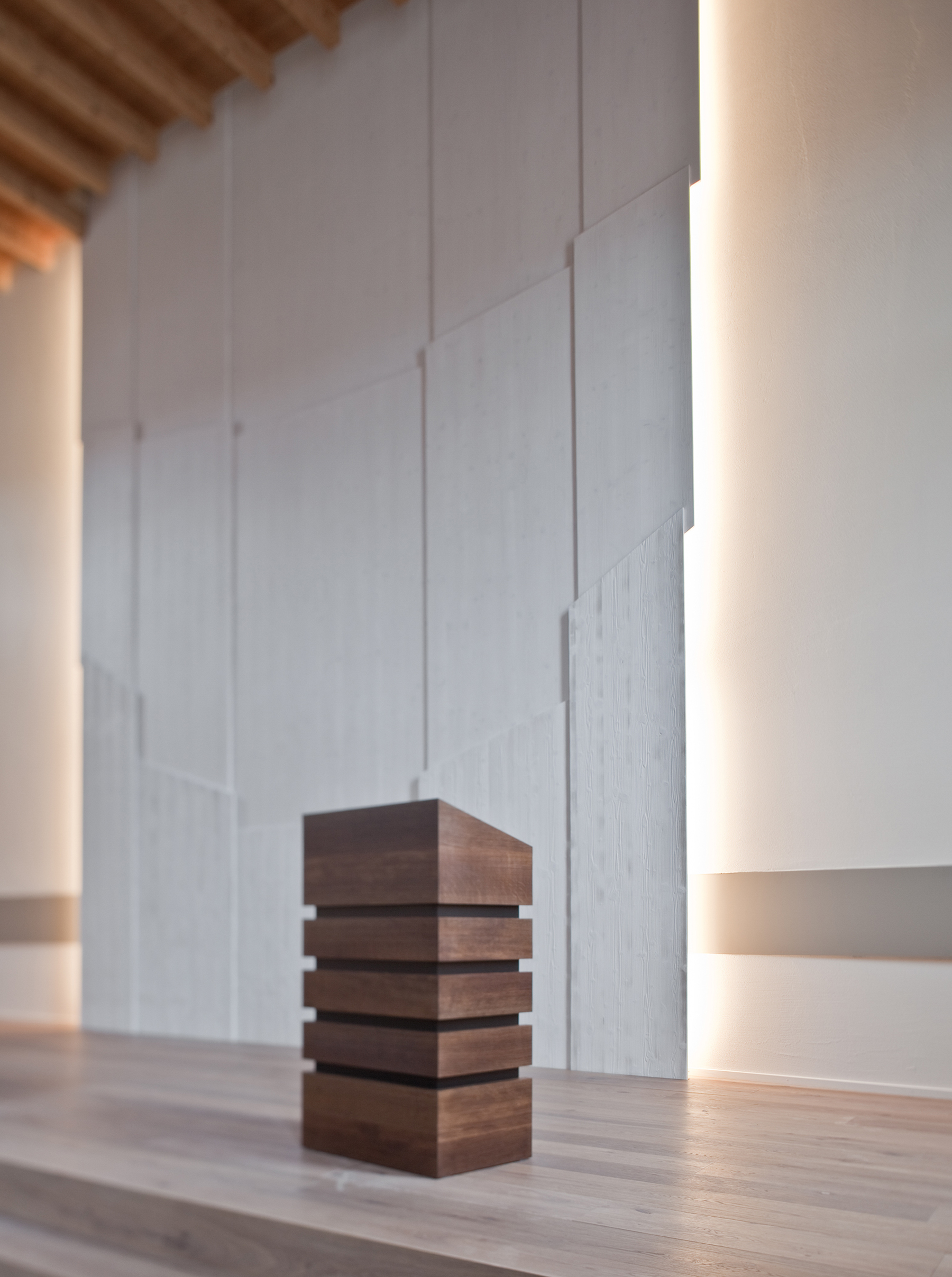 Für die neu sanierte reformierte Kirche Kollbrunn setzte LIGHT ON das Beleuchtungskonzept als Totalunternehmer um. Mit einer sensiblen und sehr atmosphärischen Beleuchtung unterstreicht LIGHT ON die offene, luftige Gestaltung durch den Architekten. Das zentrale Element des Raumes ist die Altarwand, die als skulpturales Lichtelement in Szene gesetzt wird, das den Kirchenraum klar ausgerichtet, licht und tief wirken lässt.