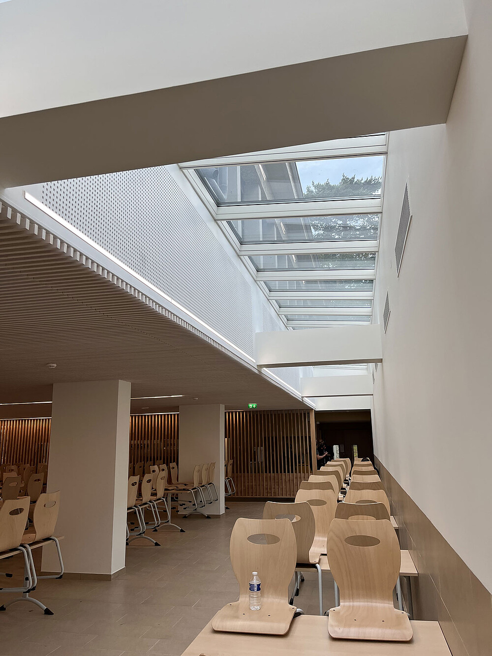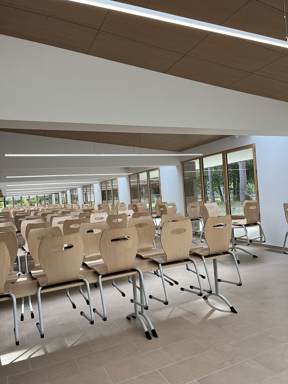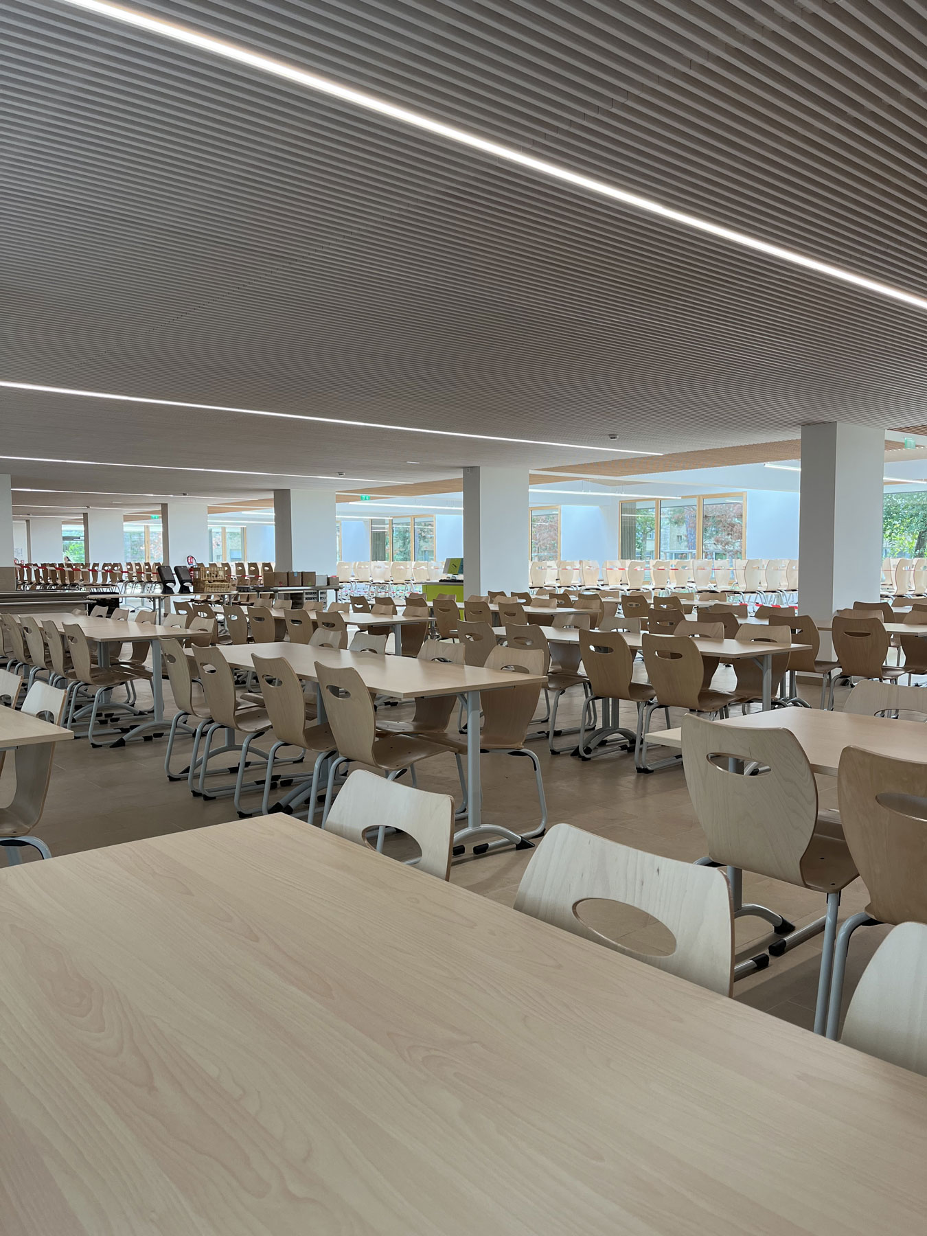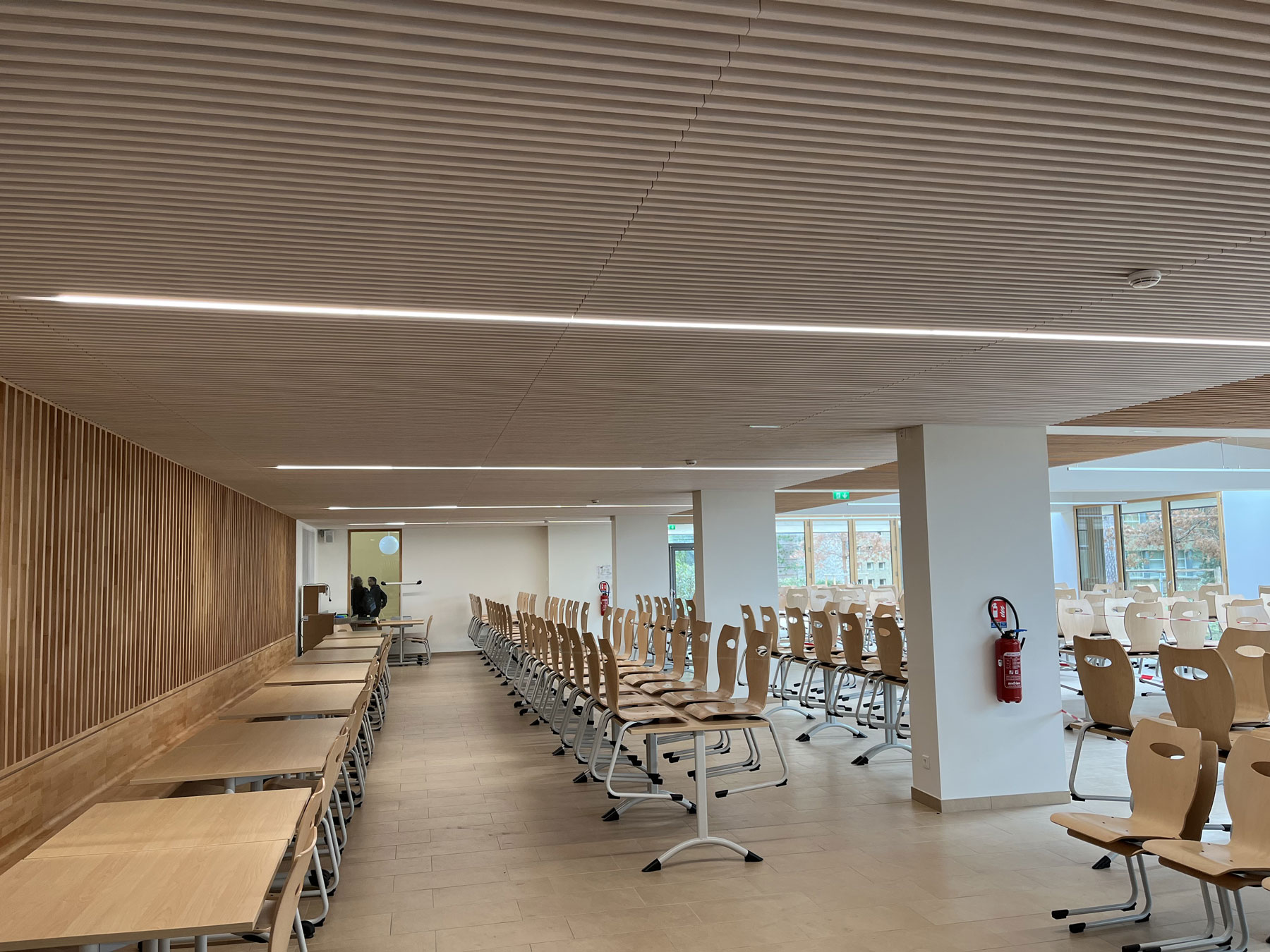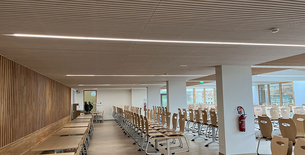 Für das Renovierungsprojekt dieses Gymnasiums der Region Île-de-France hat unser Partner und Schwesterunternehmen Fagerhult France vorgeschlagen, zusätzlich zu den Produkten aus ihrem eigenen Sortiment auch lineares Licht von LED Linear™ zu installieren. Diese sollten entweder abgehängt oder in die Holzlatten-Decke integriert werden und Teil der Umstrukturierung sowie Erweiterung der Schulcafeteria im Erdgeschoss sein.