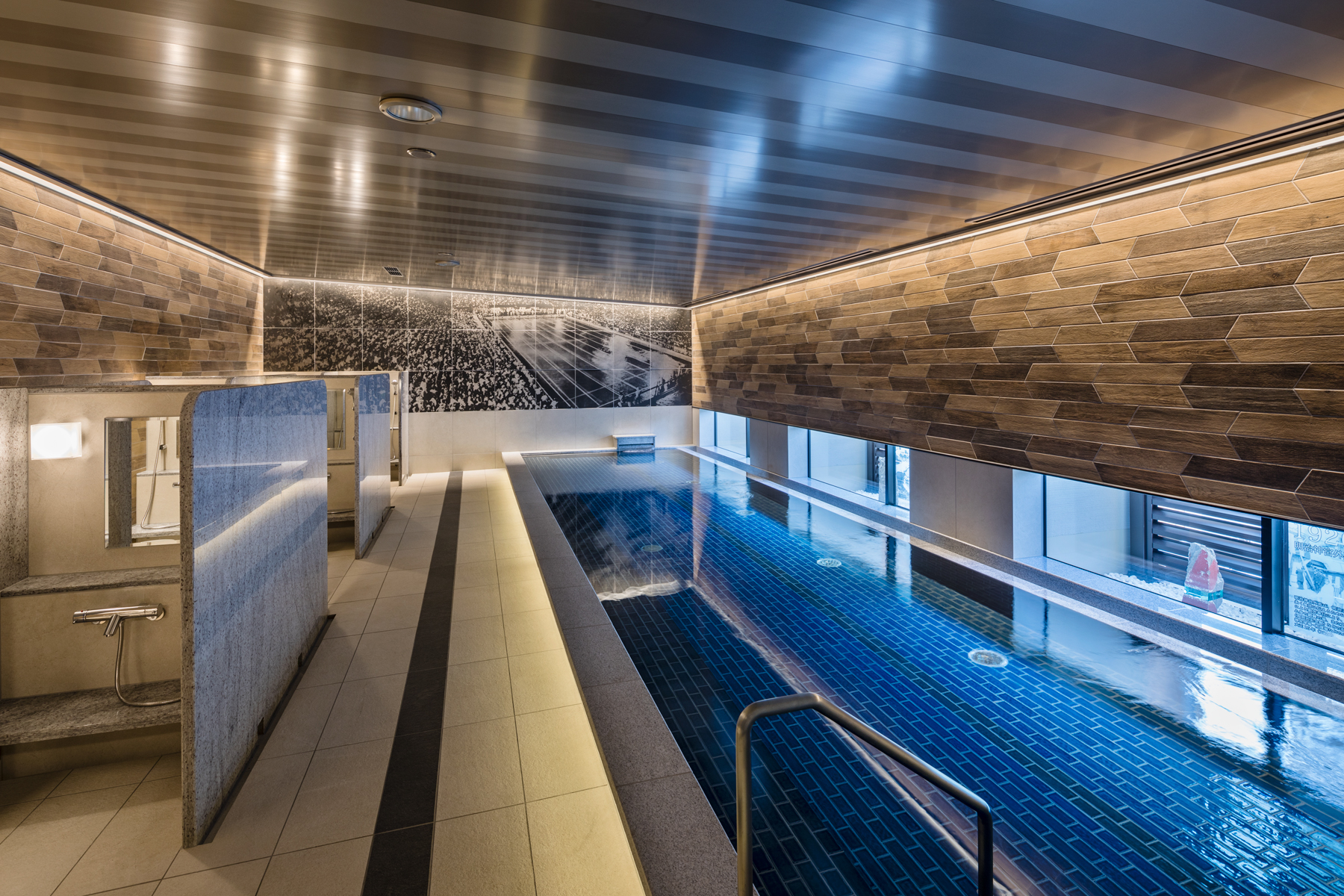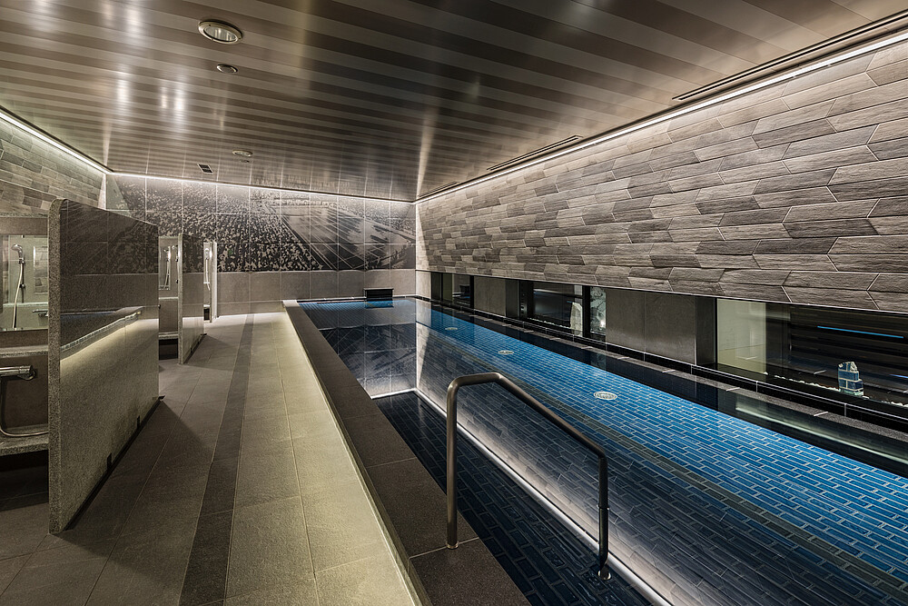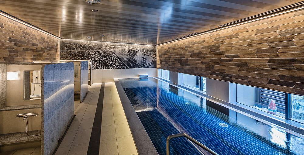 Das Mitsui Garden Hotel Jingugaien Tokyo Premier wurde nur 6 Gehminuten vom neuen Nationalstadion in Tokio, in dem 2020 die Olympischen Spiele ausgetragen wurden, erbaut. Die Lichtlinie KALYPSO wurde im großen Poolbereich als indirekte Wandbeleuchtung, direkt unter der Decke, angebracht. Dies sorgt für eine effiziente Beleuchtung der Wände, hebt aber auch das geflieste Muster an den Wänden und das große Bild hervor, was dem Raum eine künstlerische Atmosphäre verleiht.