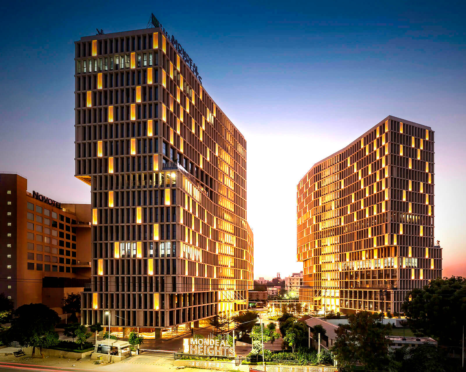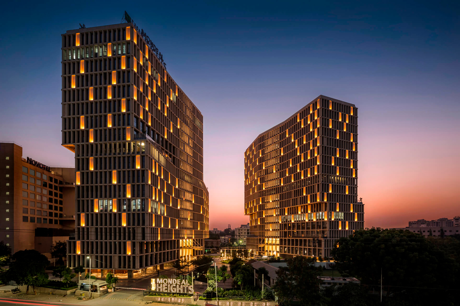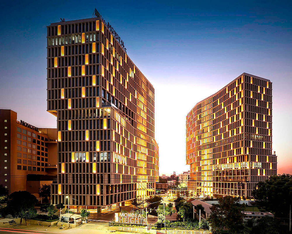 Das Mondeal Heights-Projekt begann mit einer sehr klassischen Idee für statische Flutlichter für die Fassade von Bauherren und Architekten, die das verdrehte Volumen jedes Turms hervorheben wollten.
