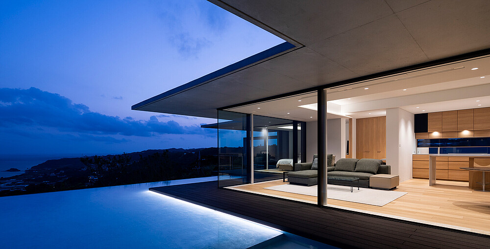 Die Leuchte schafft Unterwasser eine klare Lichtlinie entlang des L-förmigen Beckens, wodruch jeder Winkel stilvoll beleuchtet wird.