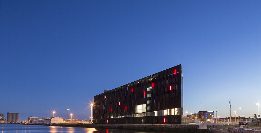 Das Konsortium SOGEA construction/ AIA/ ECHOS/ ECONOMY 80 wurde für die Planung und Realisierung der ENSM du Havre ausgewählt. Die kompakte und gemeißelte Architektur der neuen Seefahrtschule fügt sich mit ihrer monochromen Hülle in den städtischen Kontext ein. Die Außenhülle ist metallisch, mit wechselnden Reflexen. Je nach Jahreszeit, Tageszeiten und klimatischen Schwankungen entwickelt sich ein maritimer Organismus und liefert ein lebendiges Stadtbild.